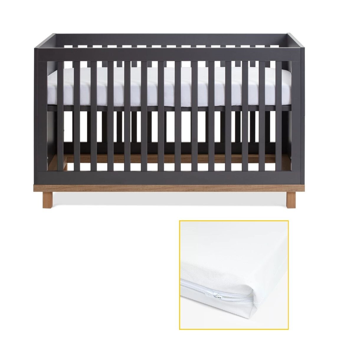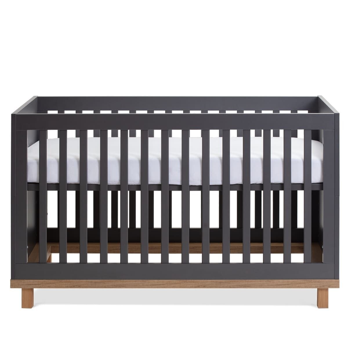 The Hoxton cot has a height-adjustable base with three positions for your newborn, then easily converts to a modern and stylish toddler bed.