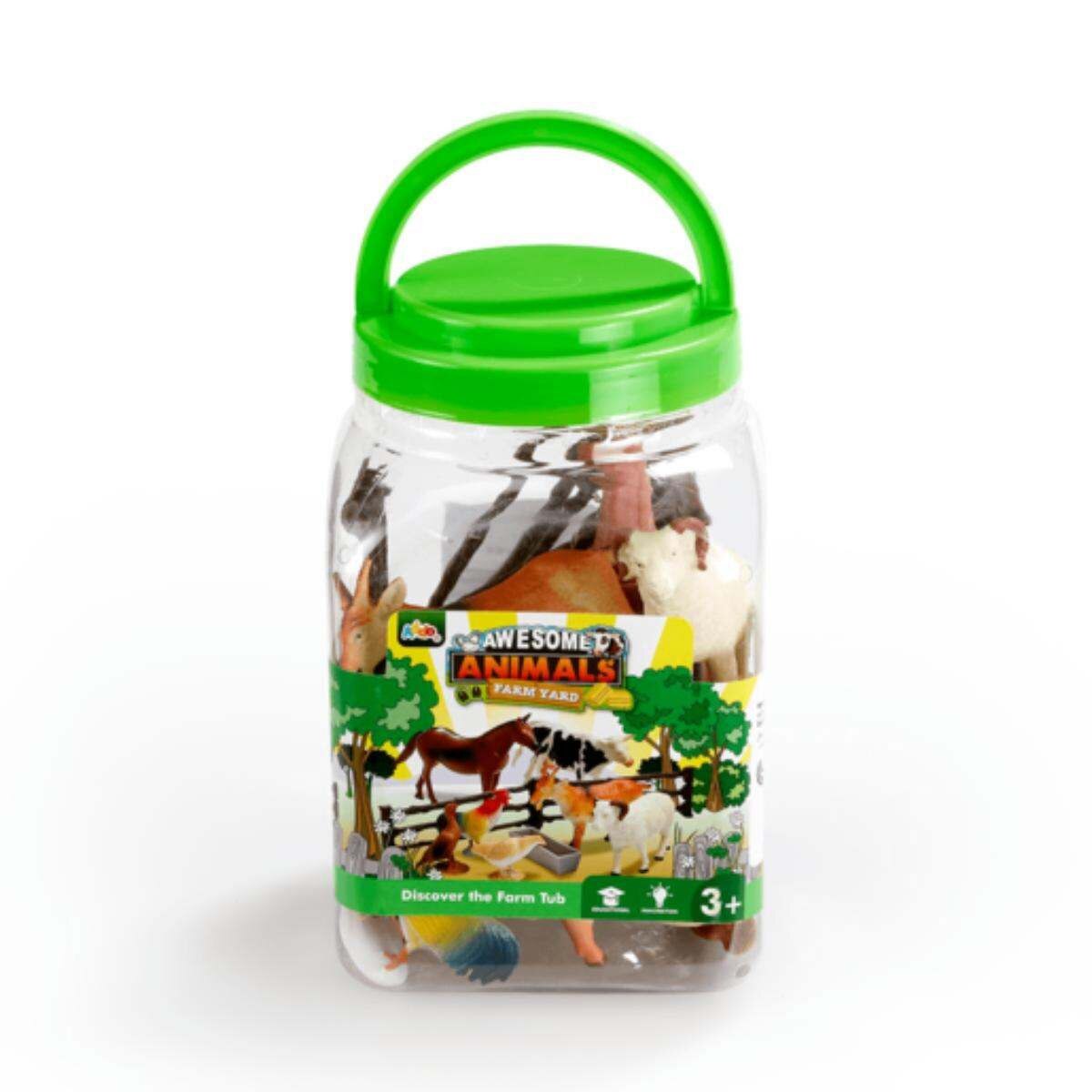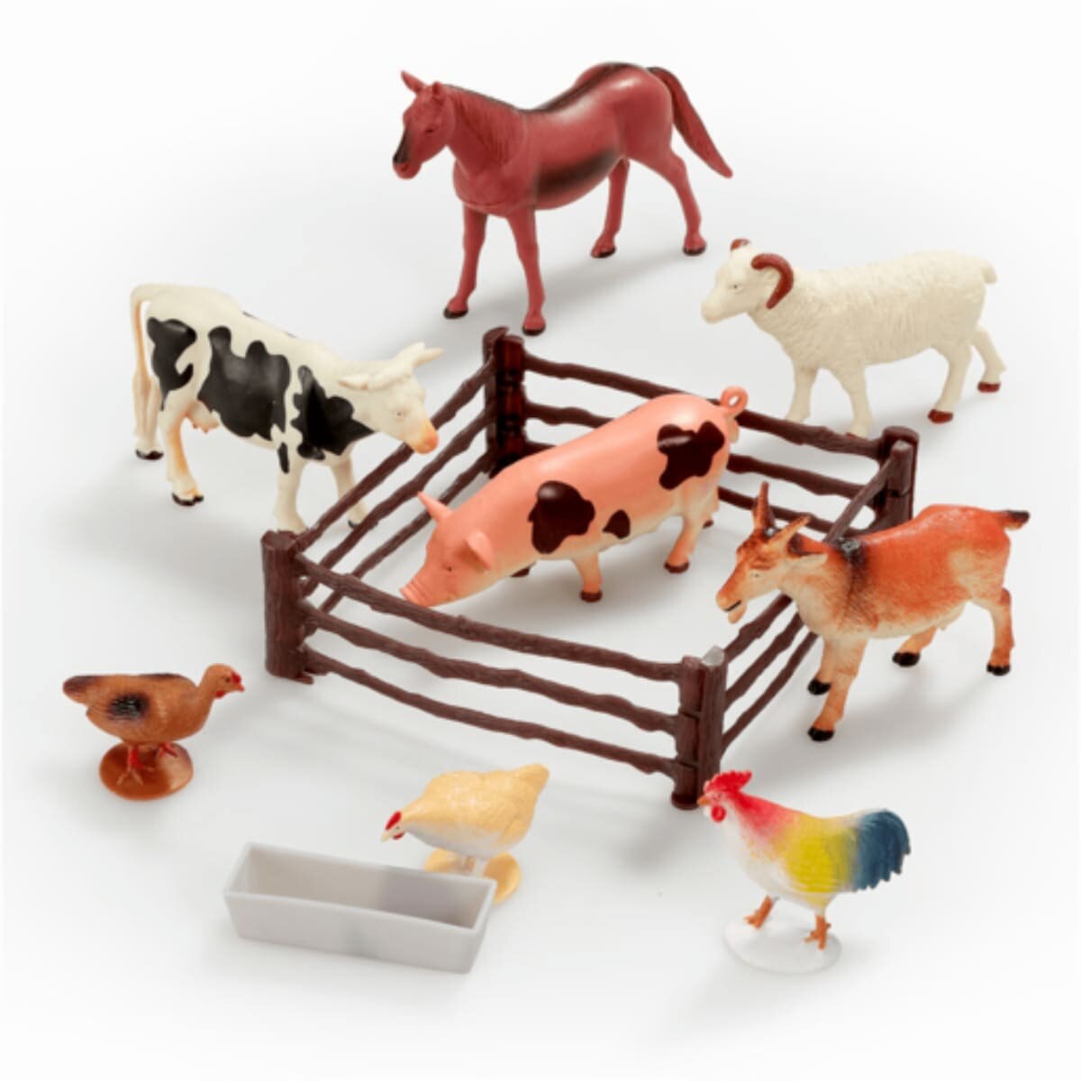 - There's a horse, cow, goat, rooster, and lots more to look after. Set up a farmyard scene for lots of imaginative play and learning about each animal.