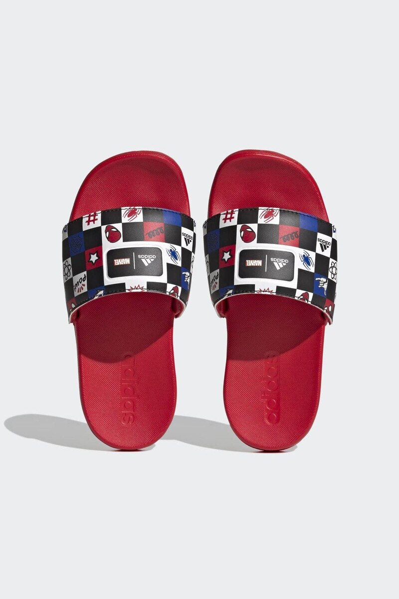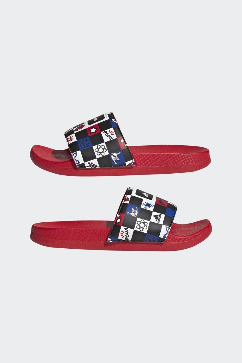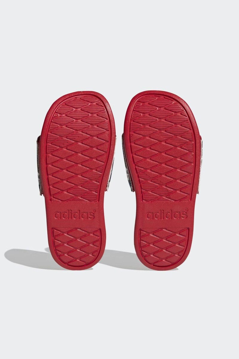Modeled after the most popular slides ever, these kids' adidas slides are packed with bright graphics to the delight of Marvel Spider-Man fans. Easy to slip on for summer trips to the park or pool, these sandals feature a contoured footbed that supports growing feet. Spider-Man graphics mean they'll save the day with their fun, fuss-free style. Made with a series of recycled materials, this upper features at least 50% recycled content. This product represents just one of our solutions to help end plastic waste.