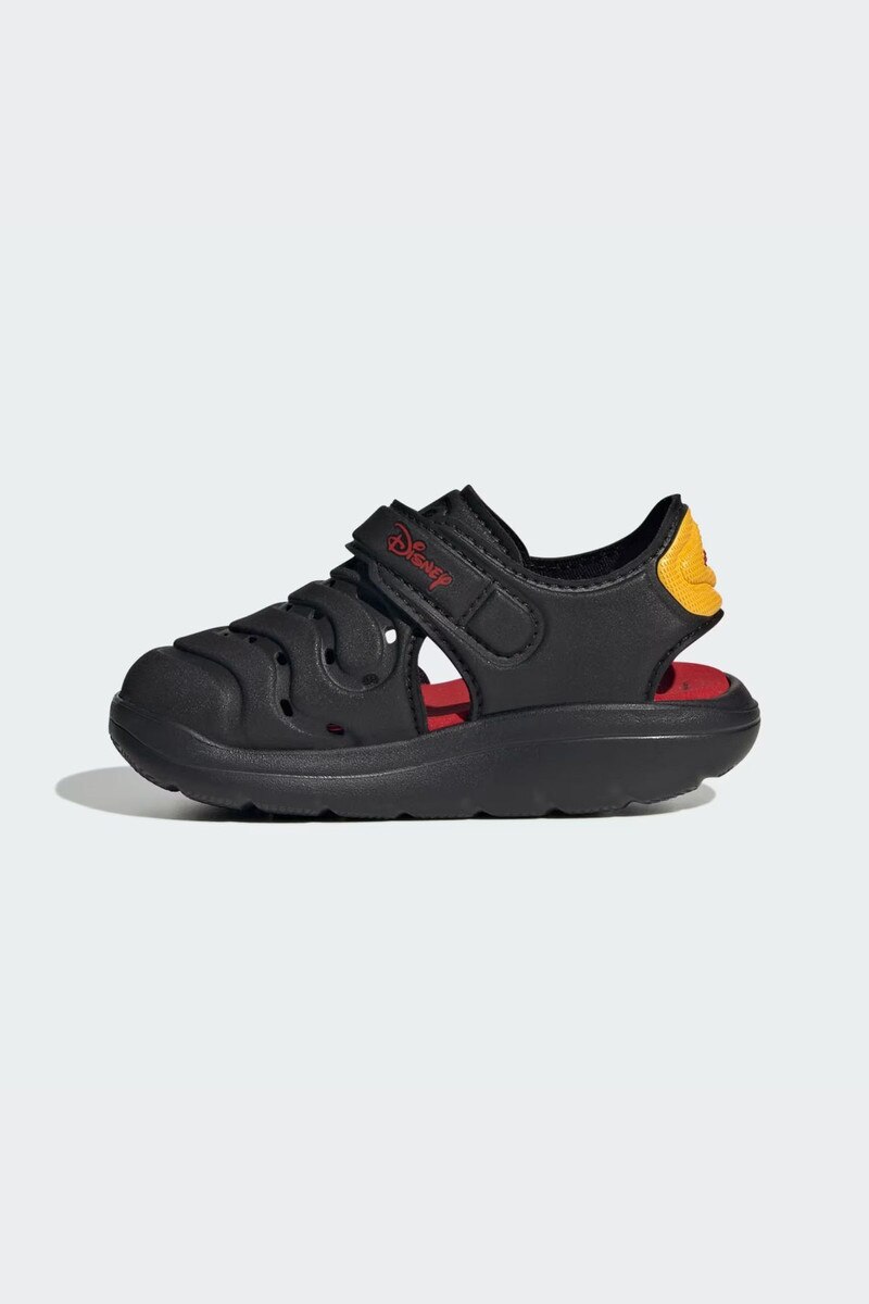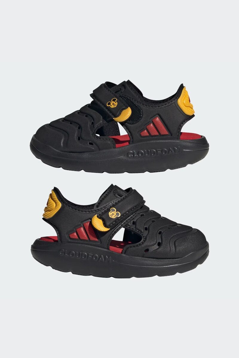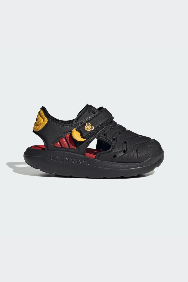 The adidas Disney Mickey Mouse Water Sandals Infants are made for little adventurers ready to splash into summer fun. Lightweight and fast-drying, these sandals are designed to feel comfy and protect little feet while paddling, splashing, or exploring. A hook-and-loop strap keeps them easy to put on and take off, while Cloudfoam cushioning adds soft, comfortable support for active play on wet or dry surfaces. The open design allows water to drain, keeping feet feeling light and unrestricted. With classic Mickey Mouse imagery and subtle adidas branding, these summer-ready sandals are a treat for little feet.