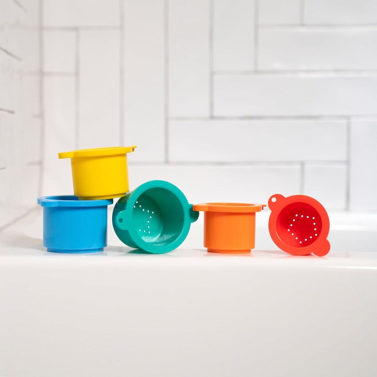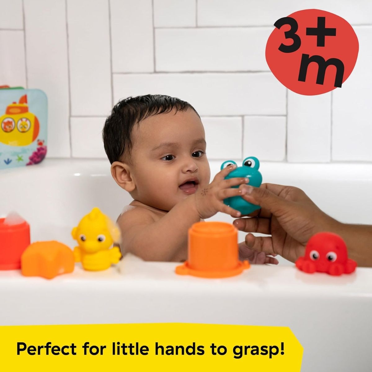 This set also encourages hands-on exploration with uniquely designed stacking cups and floating toys. The five perforated cups allow babies to fill, stream, and pour water in different shapes, teaching them about patterns and early problem-solving skills. Additionally, babies can stack and nest the cups to build small towers, enhancing their reasoning and fine motor skills. The five floating sea creature toys, including a crab, seahorse, starfish, sea turtle, and octopus, help introduce ocean animals and colors, making bath time an engaging learning experience.