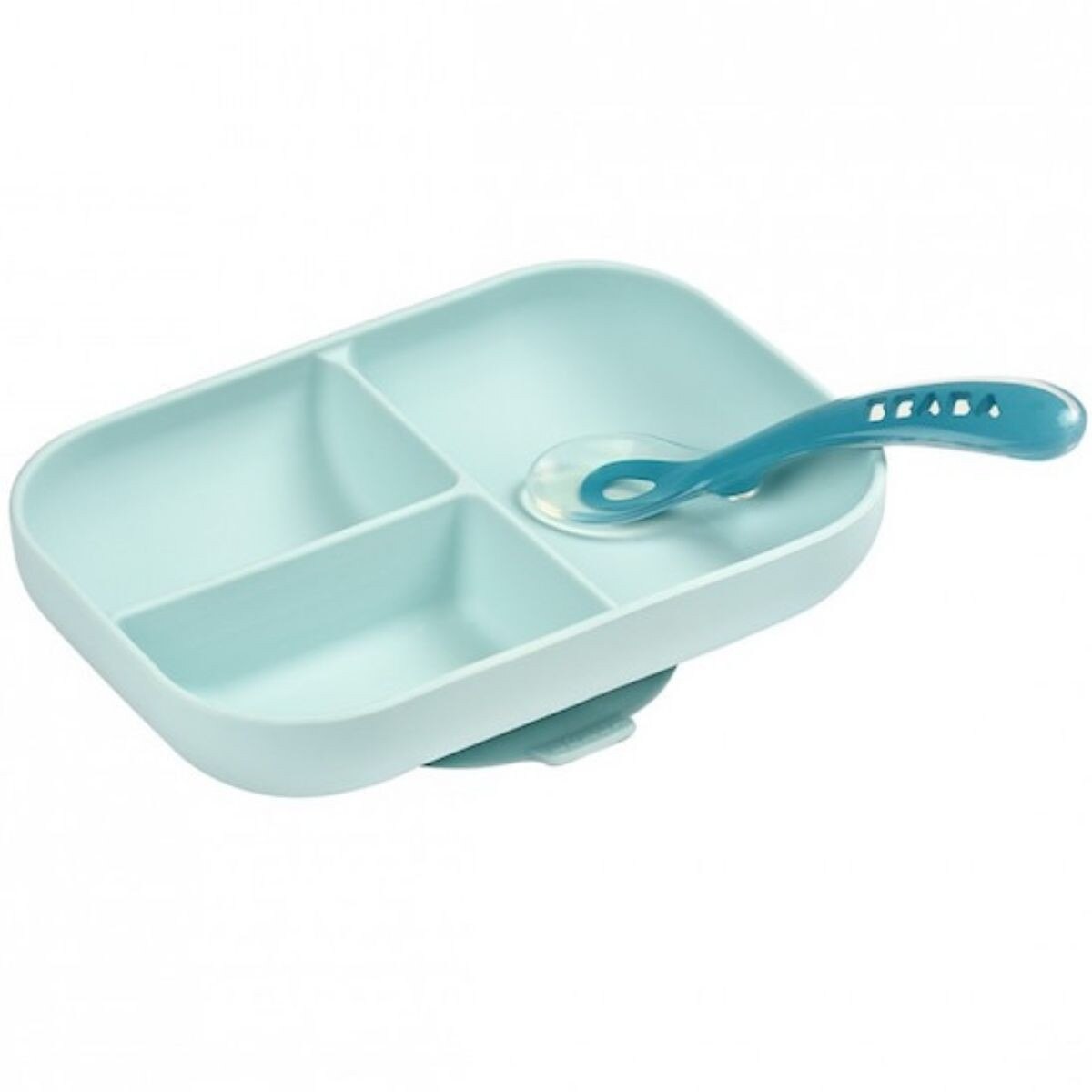 Beaba Silicone Suction Divided Plate & 2nd Age Spoon - Assorted Colours