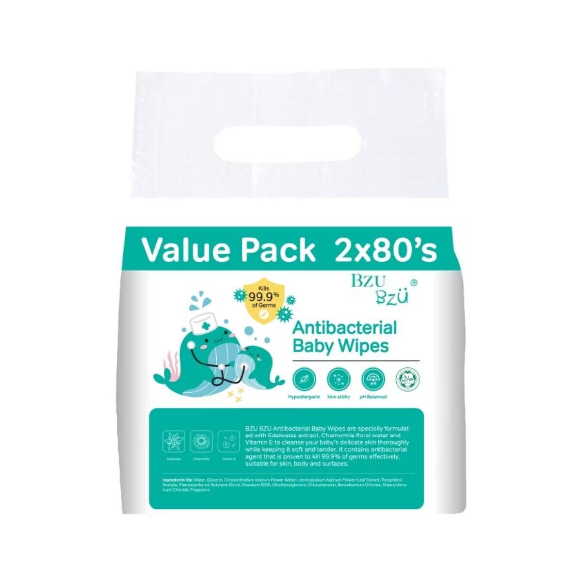 Bzu Bzu Anti Bacterial Baby Wipes 80X2