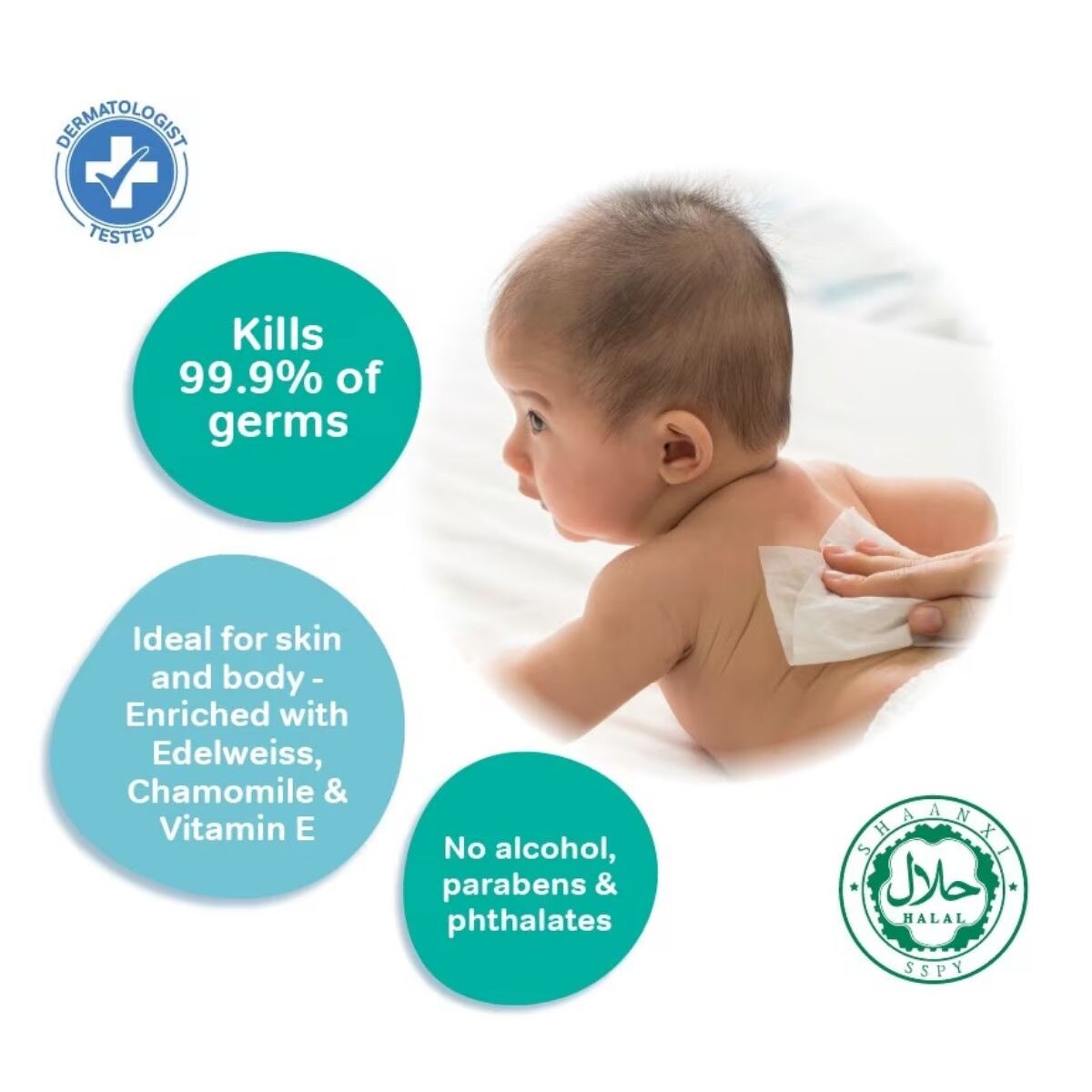BZU BZU Antibacterial Baby Wipes are specially formulated with Edelweiss extract, Chamomile floral water and Vitamin E to cleanse your baby's delicate skin thoroughly while keeping it soft and tender. It contains antibacterial agent that is proven to kill 99.9% of germs effectively, suitable for skin, body and surfaces.