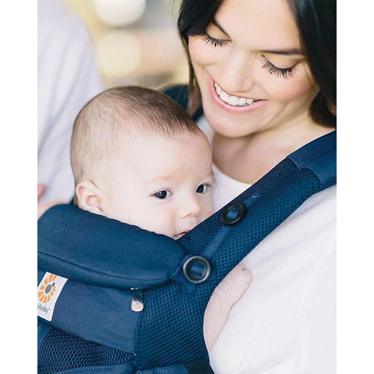 - The Omni 360 Cool Air Mesh carrier is a full mesh carrier designed to maximize ventilation to keep baby and parent cooler. It also has easy one-handed slider adjustments (instead of buttons) to narrow the seat when baby is facing out. This new adjustment makes it even easier to switch baby from facing in to facing out while on the go.