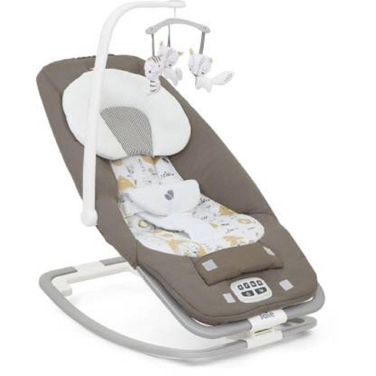 - Seat gently rocks and bounces with a push or when baby moves