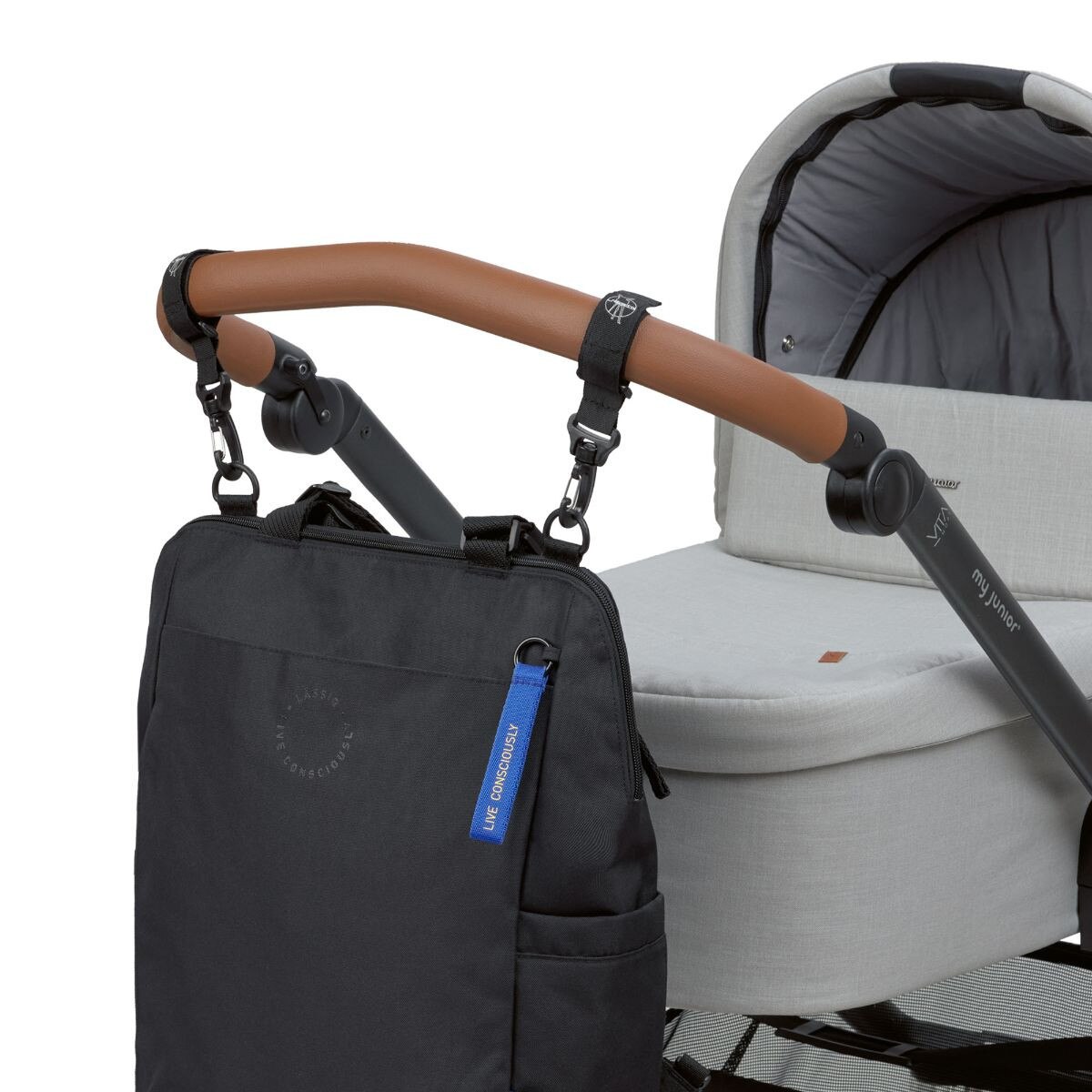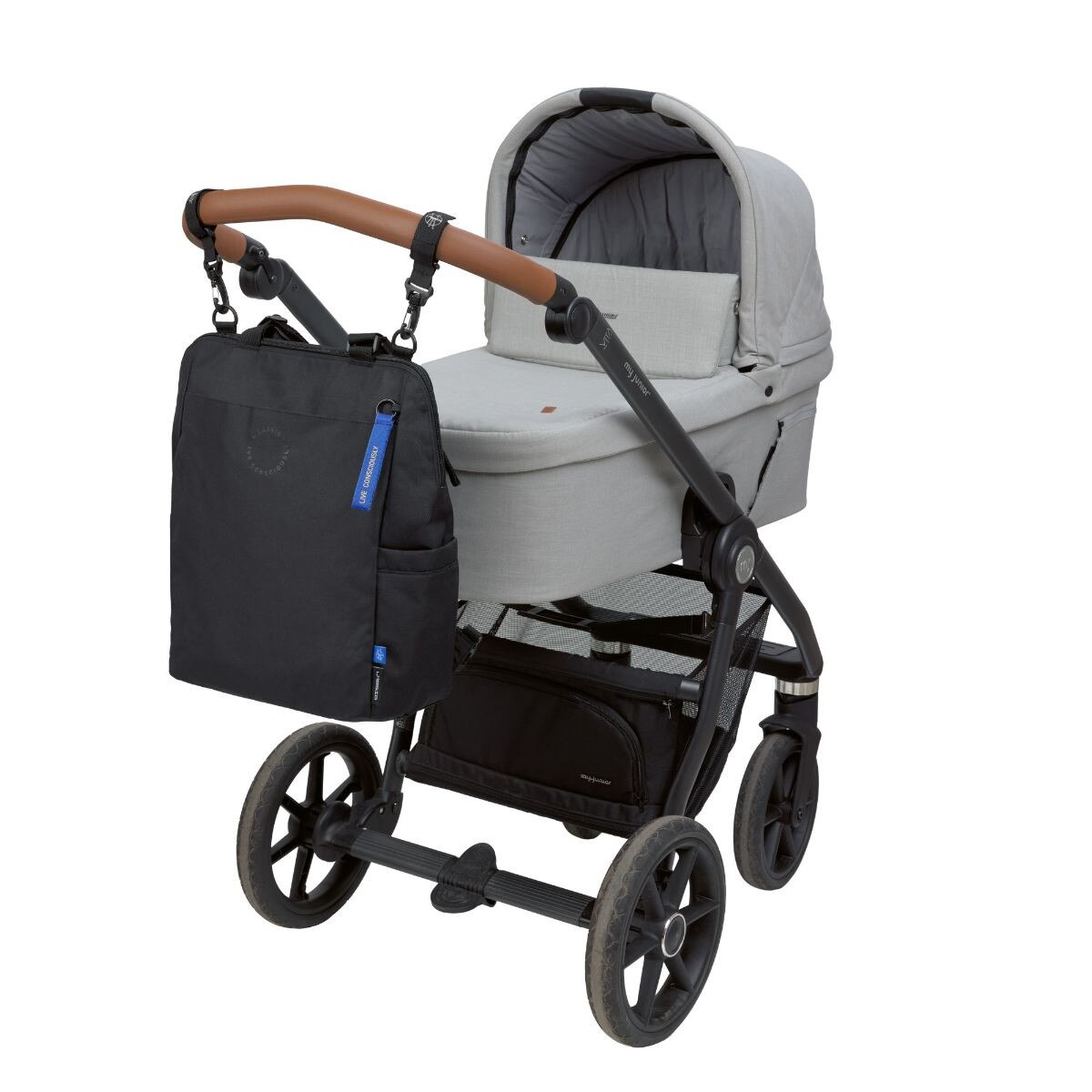 - 1x backpack including: Water-repellent changing mat, Stroller attachment, Mesh bag, Pendant
