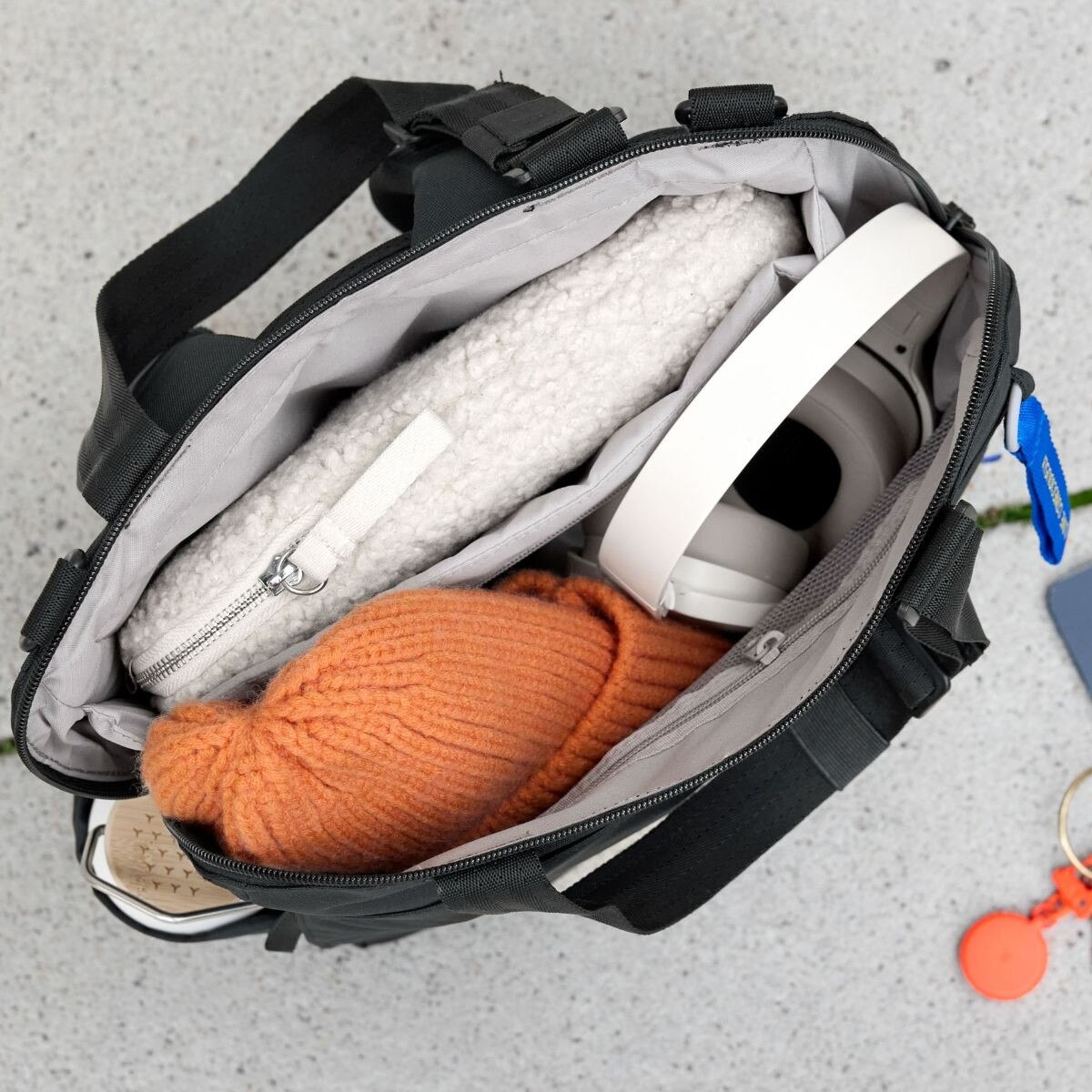 - Large opening and light-coloured lining for easy organisation