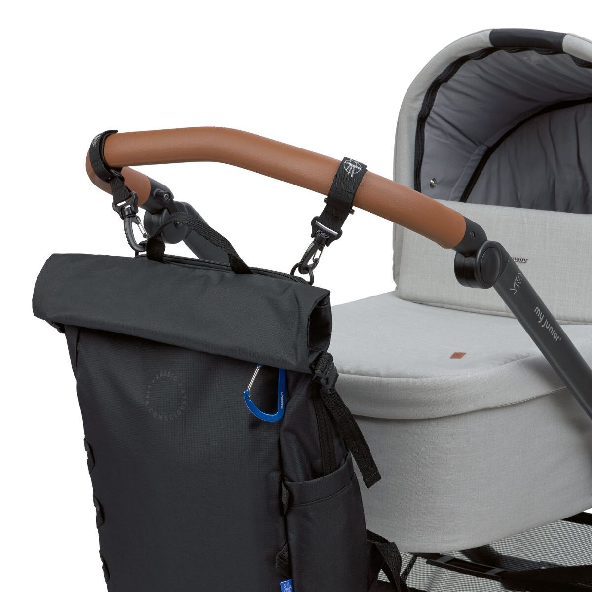 - 1x backpack including: Water-repellent changing mat, Stroller attachment, Mesh bag, Carabiner