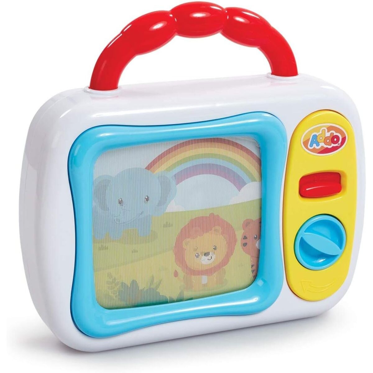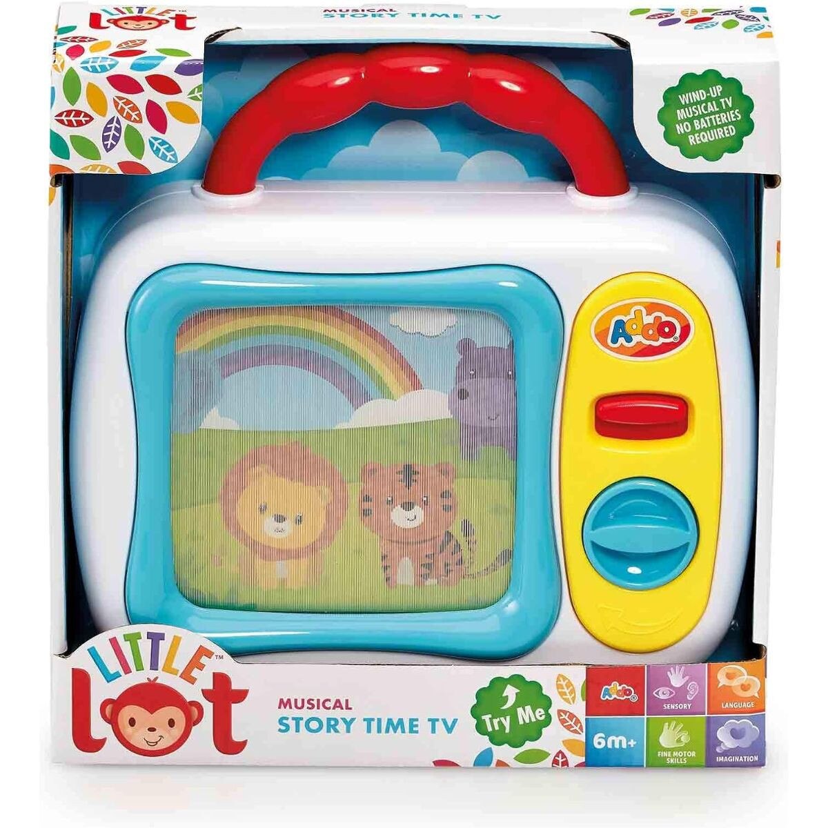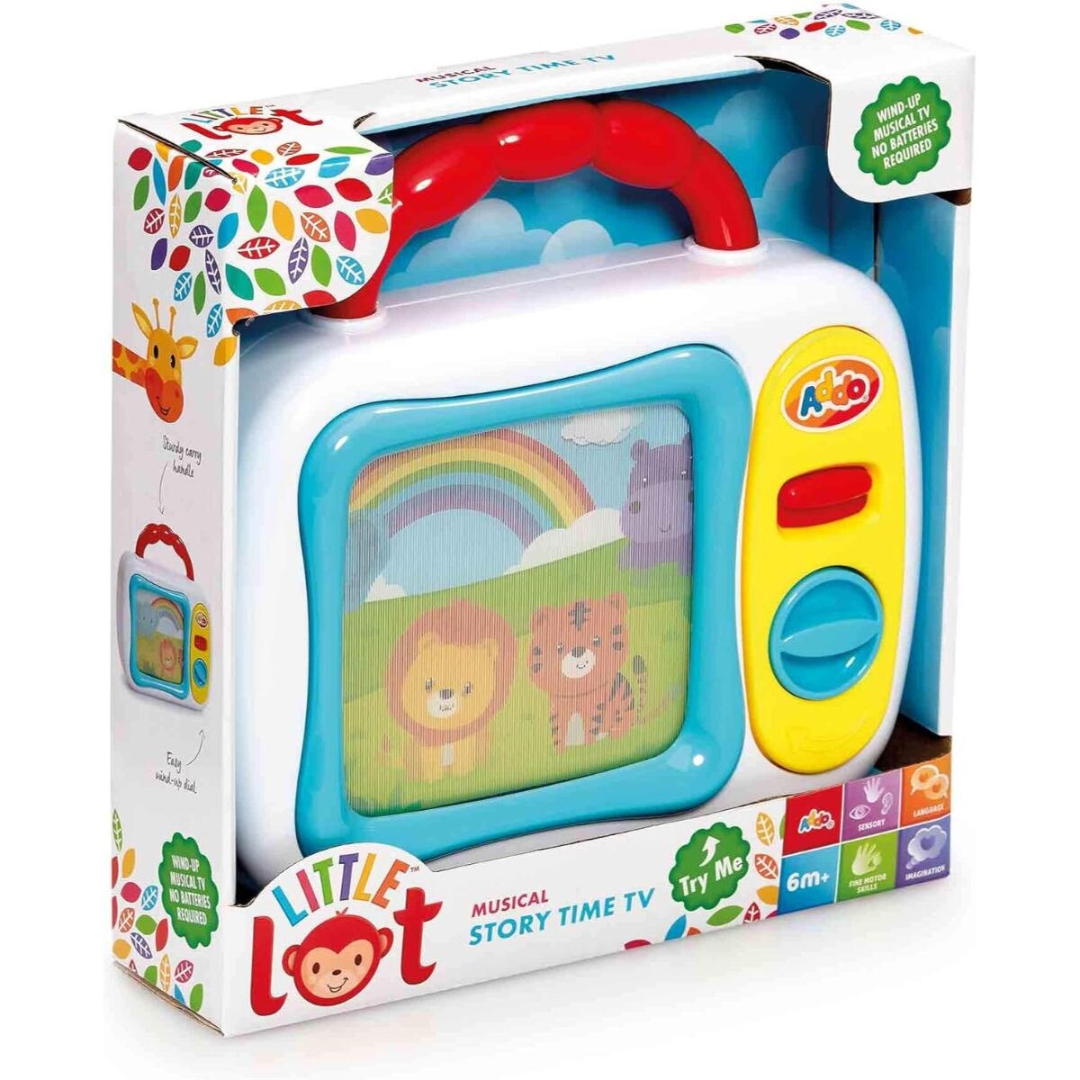 Children can enjoy hours of entertainment with the Musical Story Time TV from the Little Lot range. Wind up the rotating dial to activate the colourful story. Watch the fun characters dance along the screen while listening to the tune that plays along. Great for at home or on the go playtime, the textured carry handle and lightweight, sturdy design allows for entertainment wherever you are.