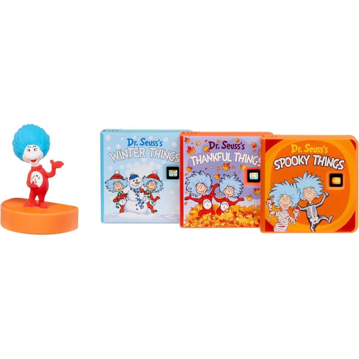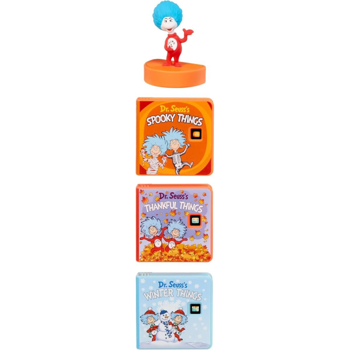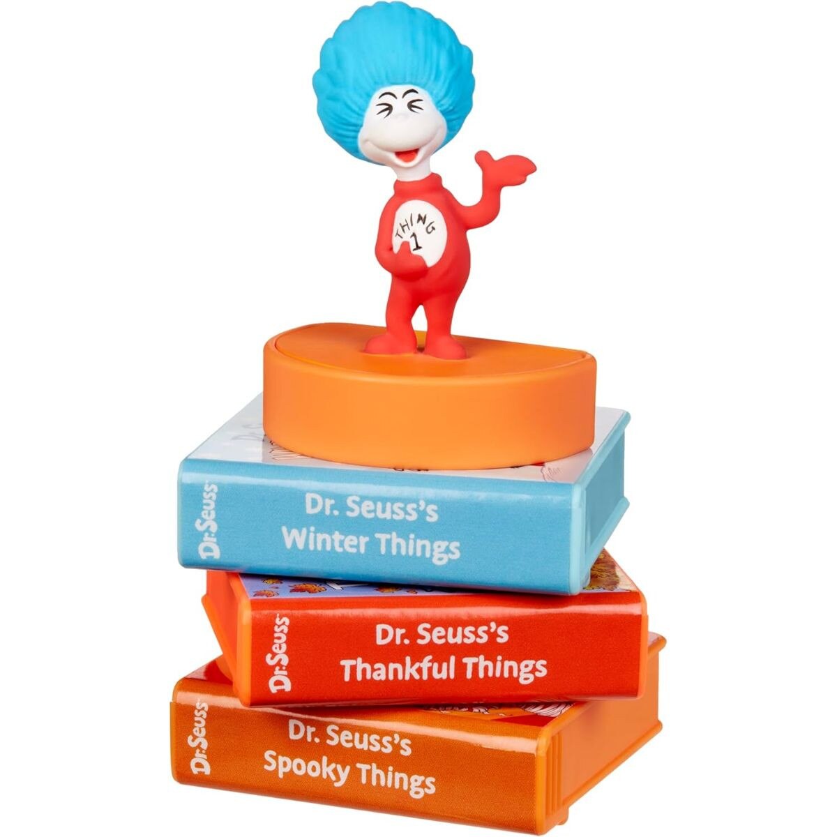 The Dr. Seuss Thing 1 Collection for the Little Tikes® Story Dream Machine™ includes 3 stories and 1 character that adds light effects in nightlight mode. The Story Dream Machine develops beginning reading skills as children listen and read along with the narrator while words and images shine brightly on the wall. Kids will be delighted as they watch colorful lights and listen to sound effects. The always expanding library of story collections offers a great variety to choose from and can be purchased separately. Stay tuned for new content. Recommended for boys and girls ages 3+ years.