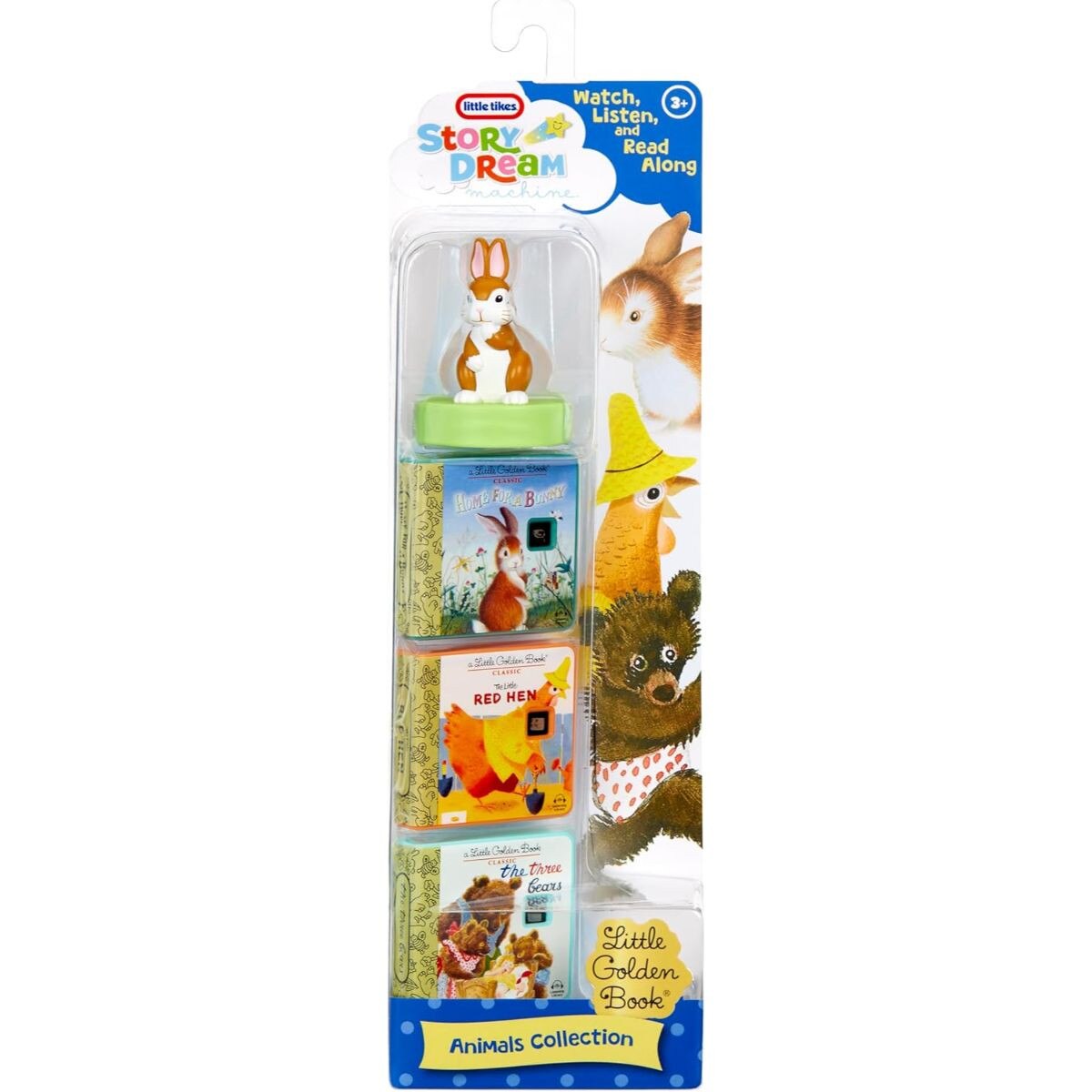 Little Golden Books Animals Collection for the Little Tikes Story Dream Machine includes 3 stories and 1 character that adds light effects in nightlight mode. The Story Dream Machine develops beginning reading skills as children see and hear words and can read along with the narrator as the words and images shine brightly on the wall. Kids will be delighted as they watch colorful lights and listen to sound effects. The always expanding library of story collections offers a great variety to choose from and can be purchased separately. Stay tuned for new content. Recommended for boys and girls ages 3+ years.