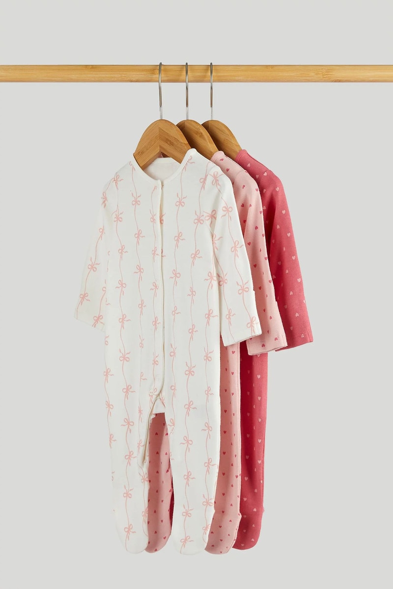 Mothercare Baby Girl 3 Pack Heart Sleepsuits