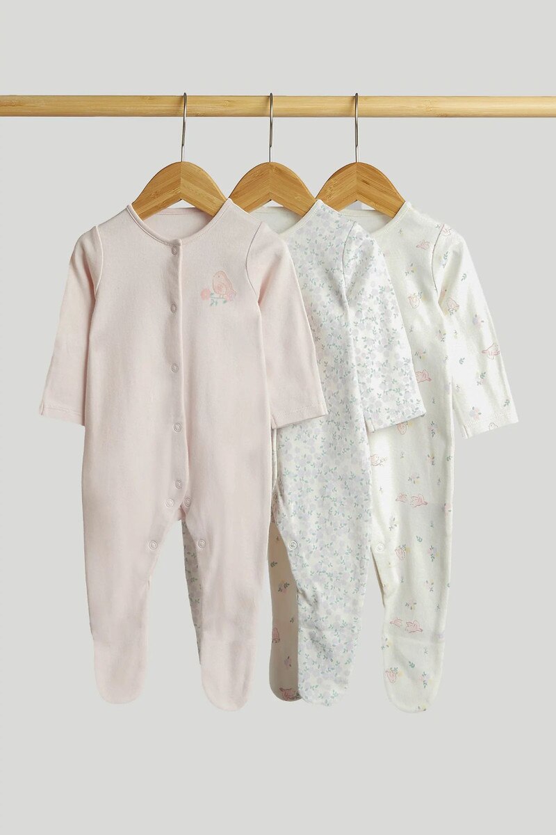 Mothercare Baby Girl 3 Pack Little Bird Sleepsuits