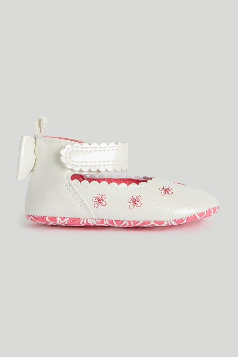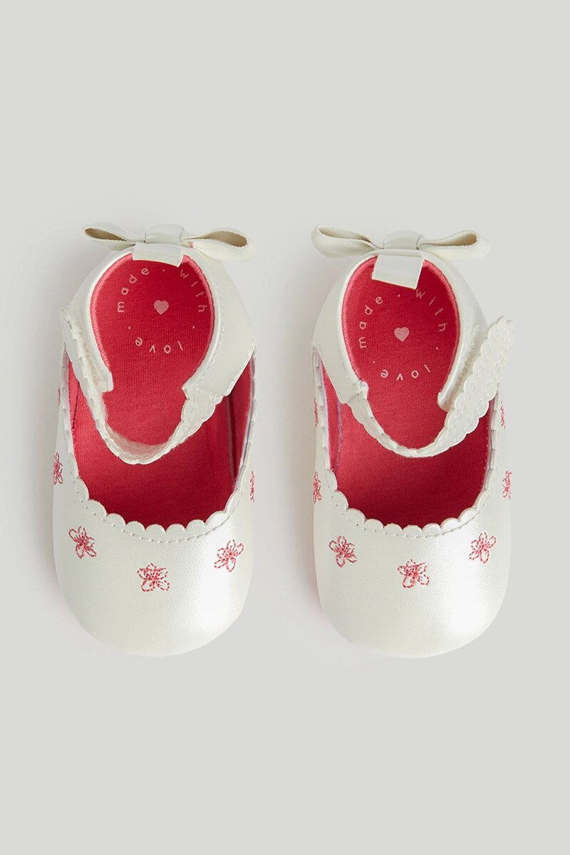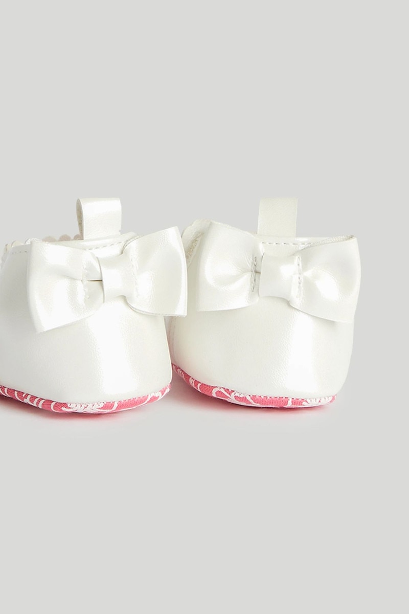 Decorated with a bow, these lightweight, flexible shoes are designed for growing and developing feet.