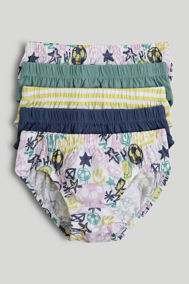 Refresh their essentials with this pack of five pure cotton briefs, which feature fun prints and bright stripes.