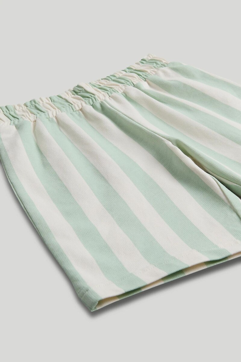 With a textured print, this jersey tee layers easily over the soft, striped cotton shorts to create a comfy outfit for sun, sea, and surf.