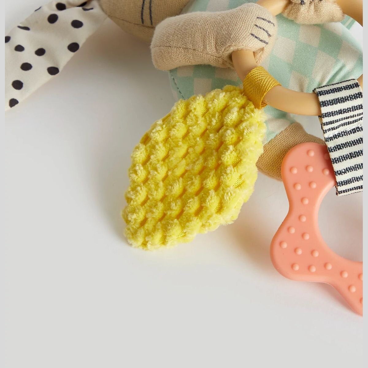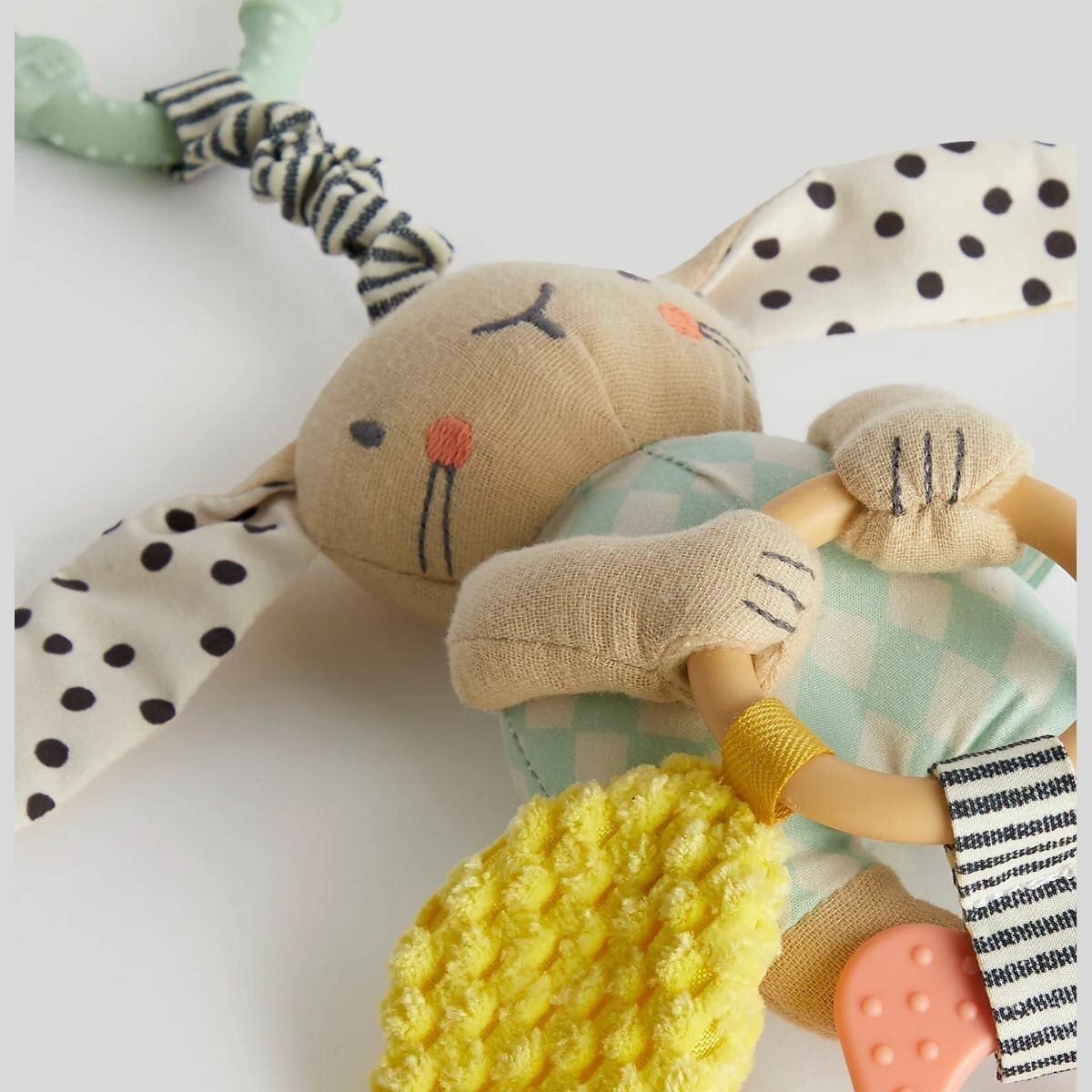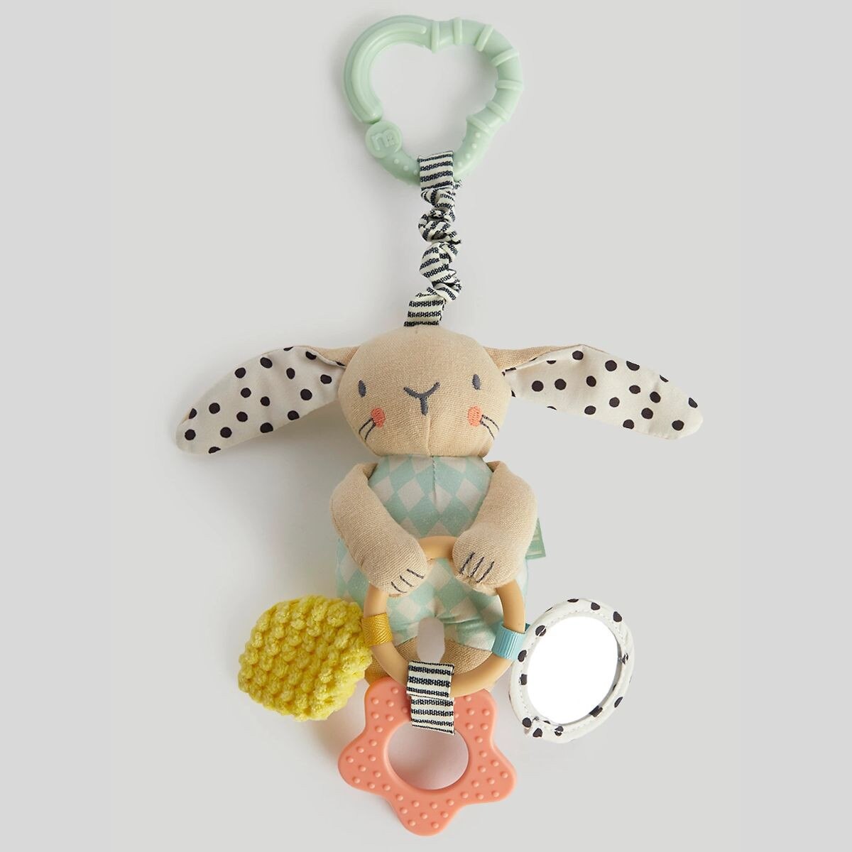 Meet our bright bunny toy, who is ready to play. With contrasting prints, fun sounds and lots of different textures, this little character has lots for little hands to explore and discover. With a handy clip to easily attach to your car seat or pushchair, this plush toy features a fun squeaker, a teether toy, a baby-safe mirror for self-discovery and much more.