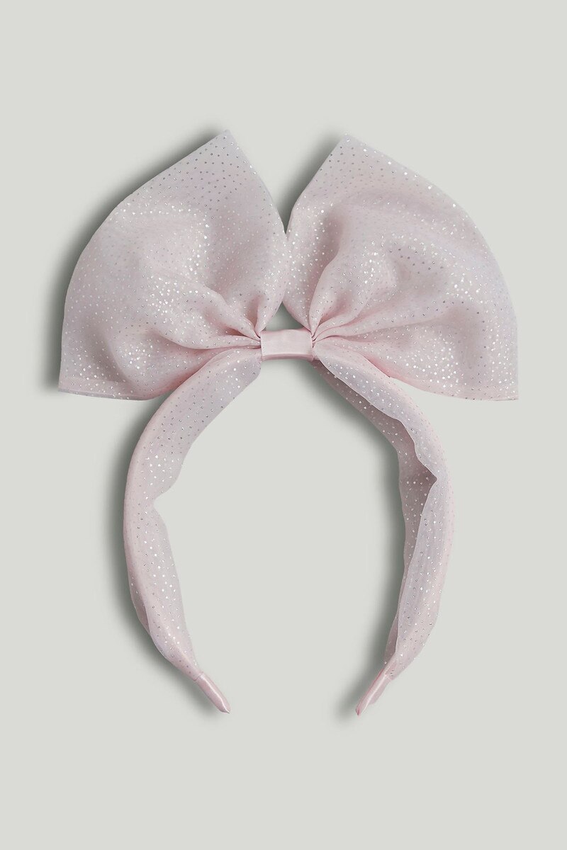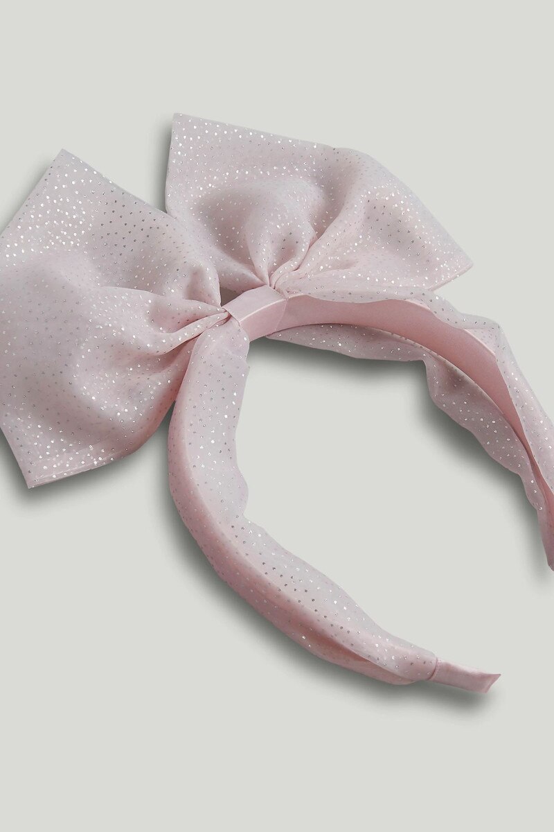 A pretty silver-spot headband with an oversized bow, perfect for special occasions.