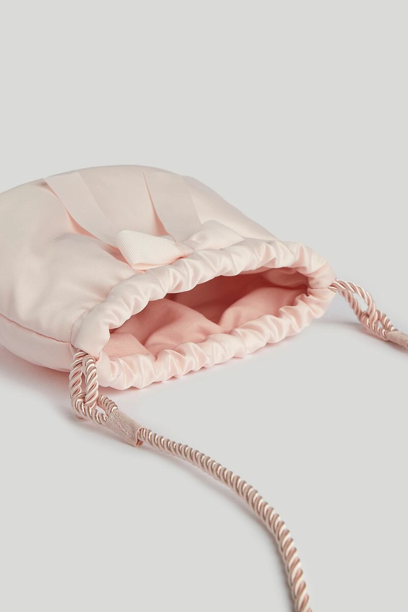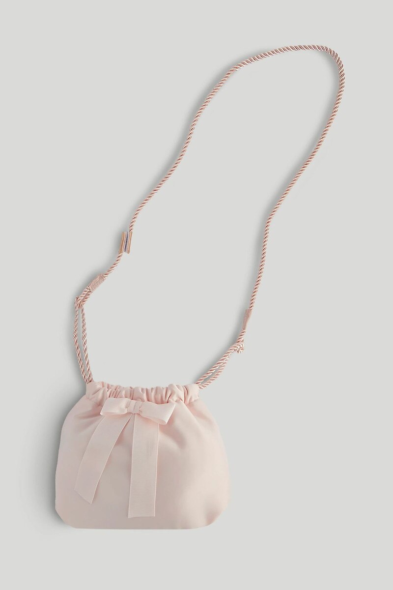 With simple drawstring closure, this pink shoulder bag decorated with a bow is perfect for their must-bring treasures.