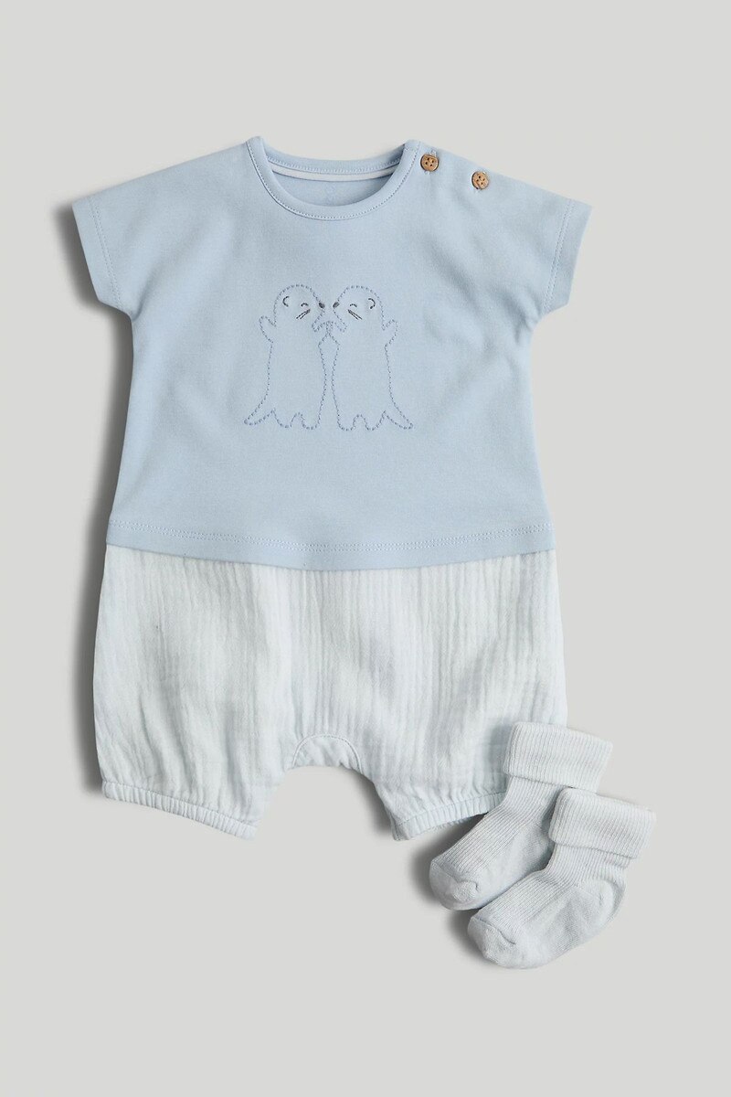 Mothercare My First Boy Willow Brook Blue Romper and Socks Outfit