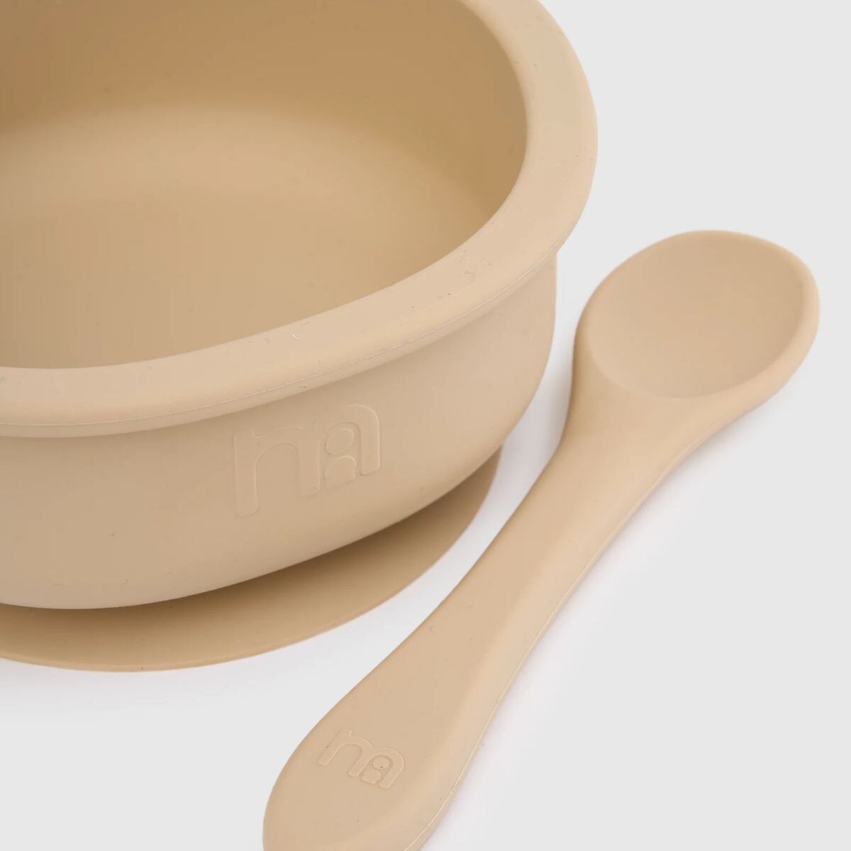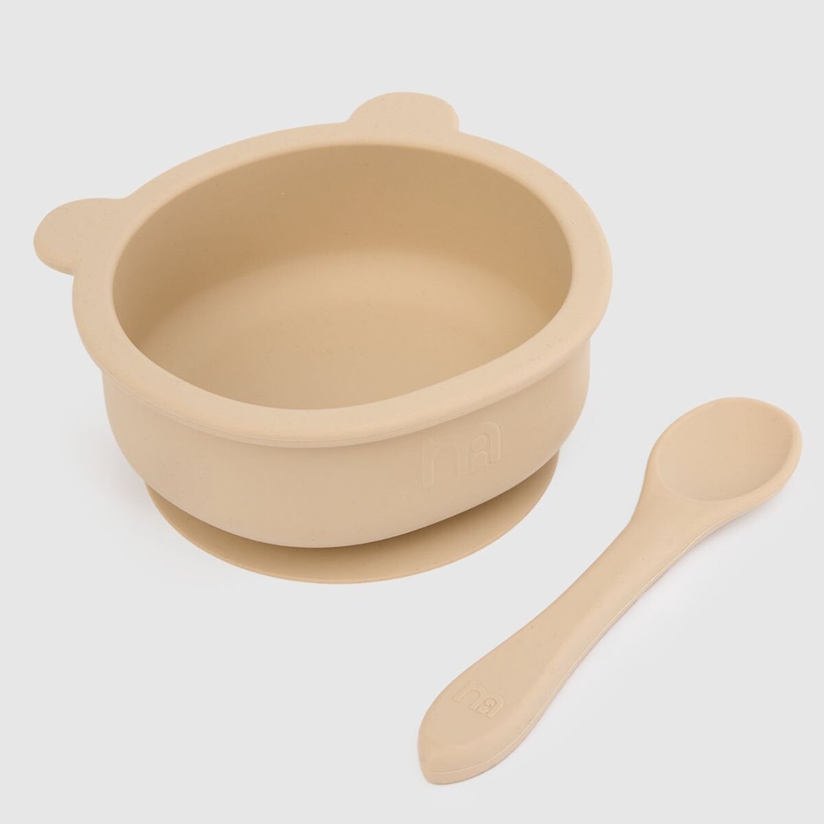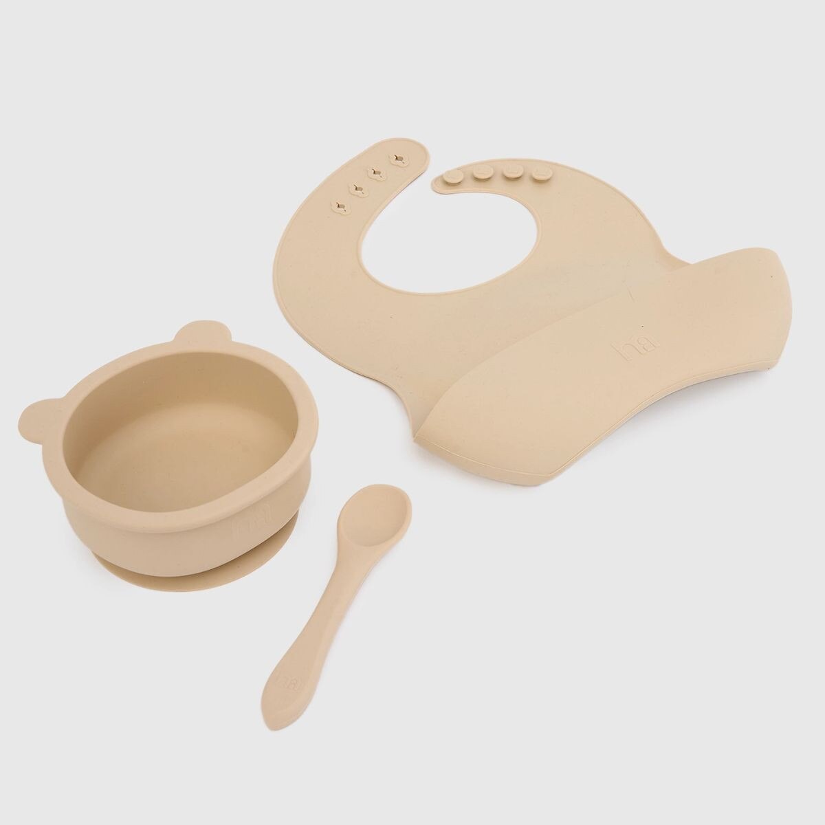 Mothercare Silicone 1St Set Bowl Bib Spoon - Beige