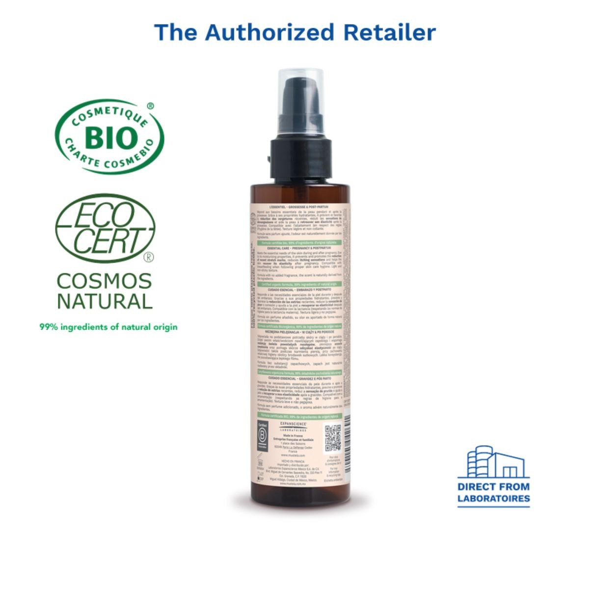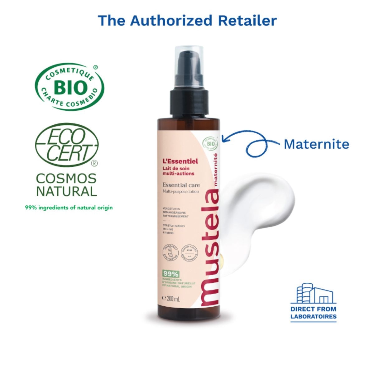 NEW Mustela's certified organic Essential Care Multi-purpose Lotion meets the skin's unique needs throughout pregnancy and after childbirth. Designed to scale down the volume of needed products, it provides multi-action benefits of limiting the appearance of stretch marks and targeting recent ones, soothing sensations of discomfort, and reinforcing skin suppleness. Composed of 99.8% natural ingredients, the non-sticky formula paired with an ultra-soft texture, rapidly absorbs for easy application. Does not stain. No added fragrance. Scent is naturally from the ingredients.