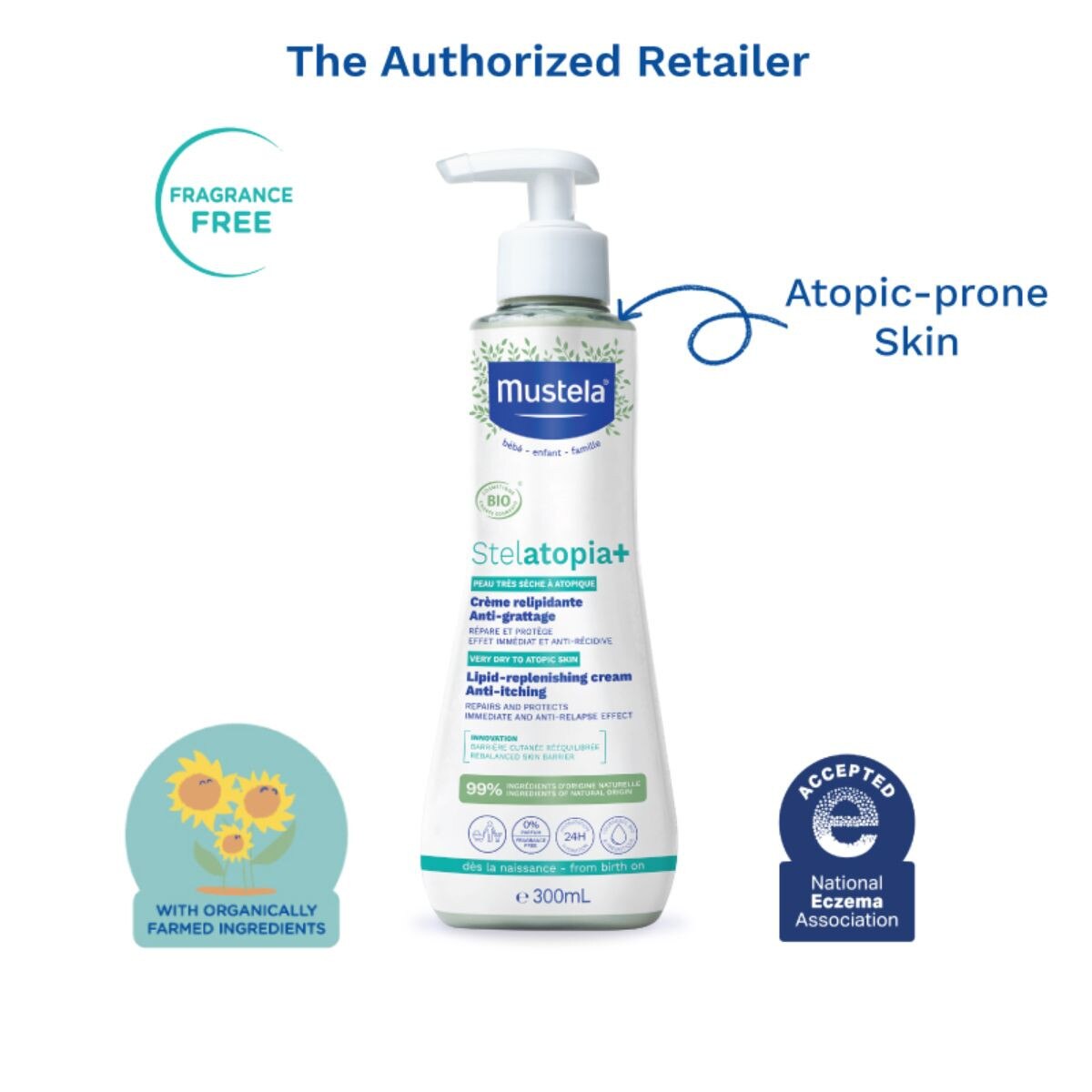 Does your family have extremely dry skin with a eczema-prone skin Without perfume, our Stelatopia + lipid-replenishing cream, with the certified ORGANIC Sunflower Oil Distillate, is conceived specifically for you. With its soft texture and very quickly absorbed co-developed with more than 200 families, it brings a feeling of alleviation and comfort.