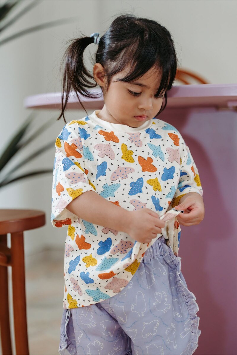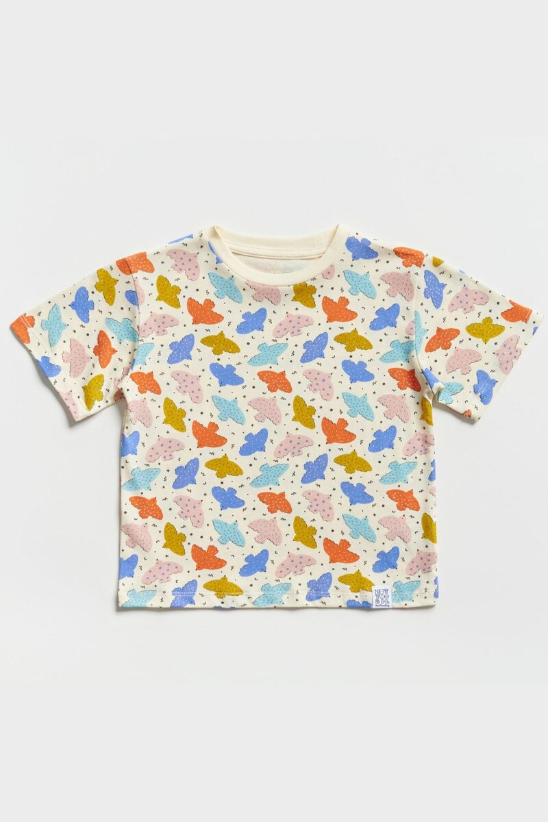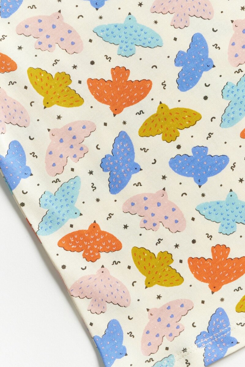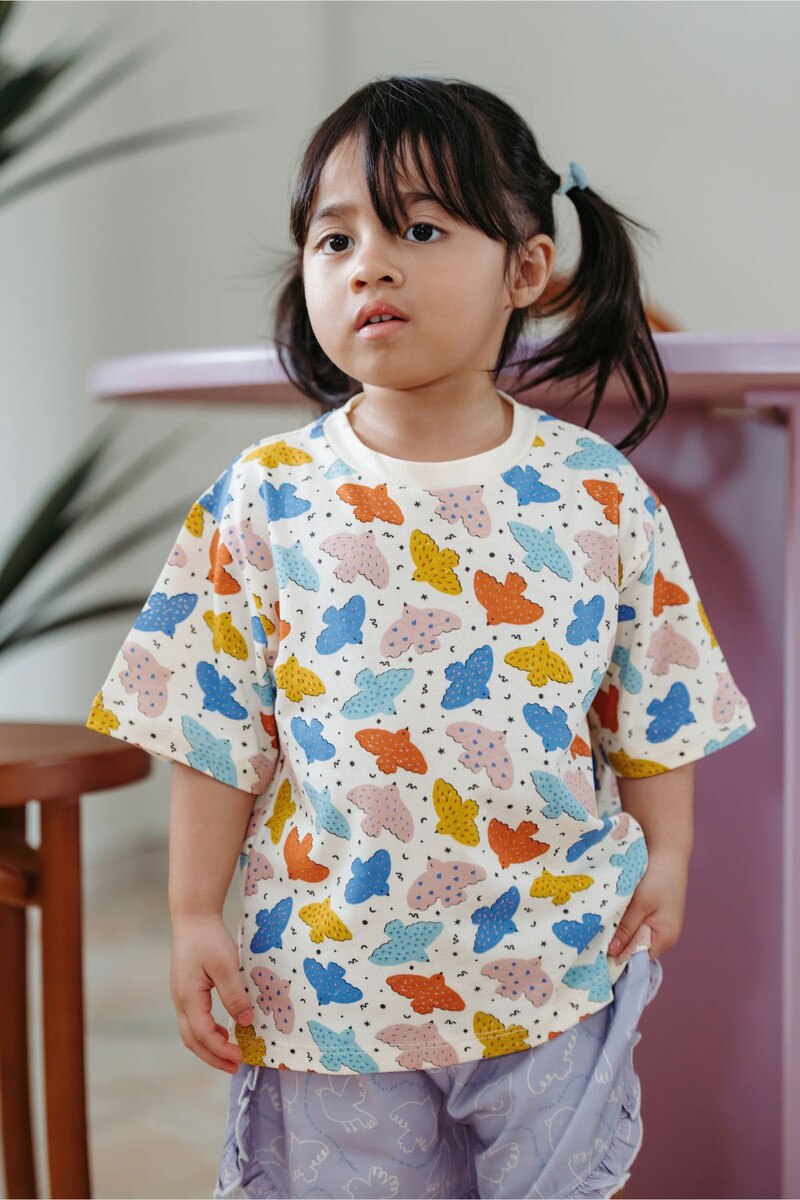 Featuring cheerful bird prints in playful tones, this oversized tee is designed for relaxed comfort and effortless styling during everyday adventures.