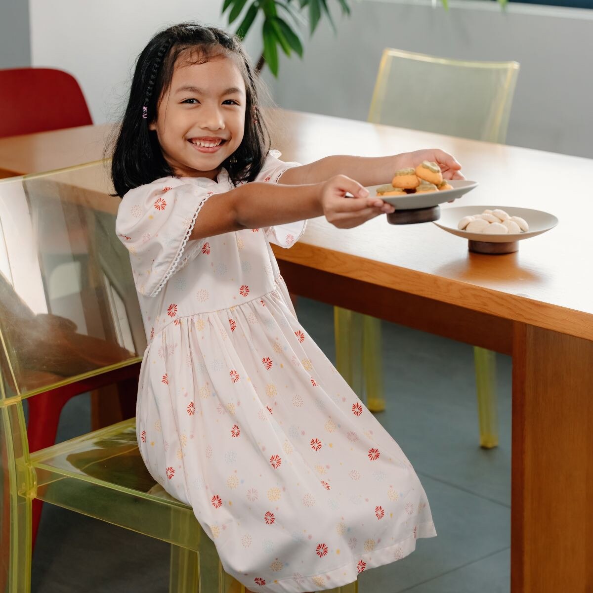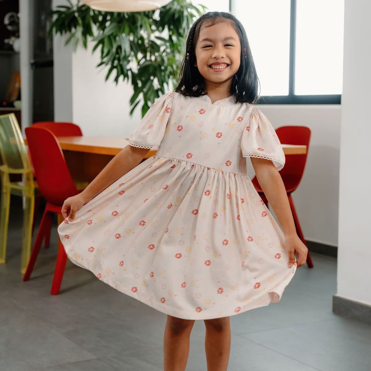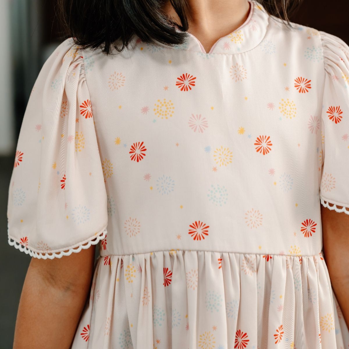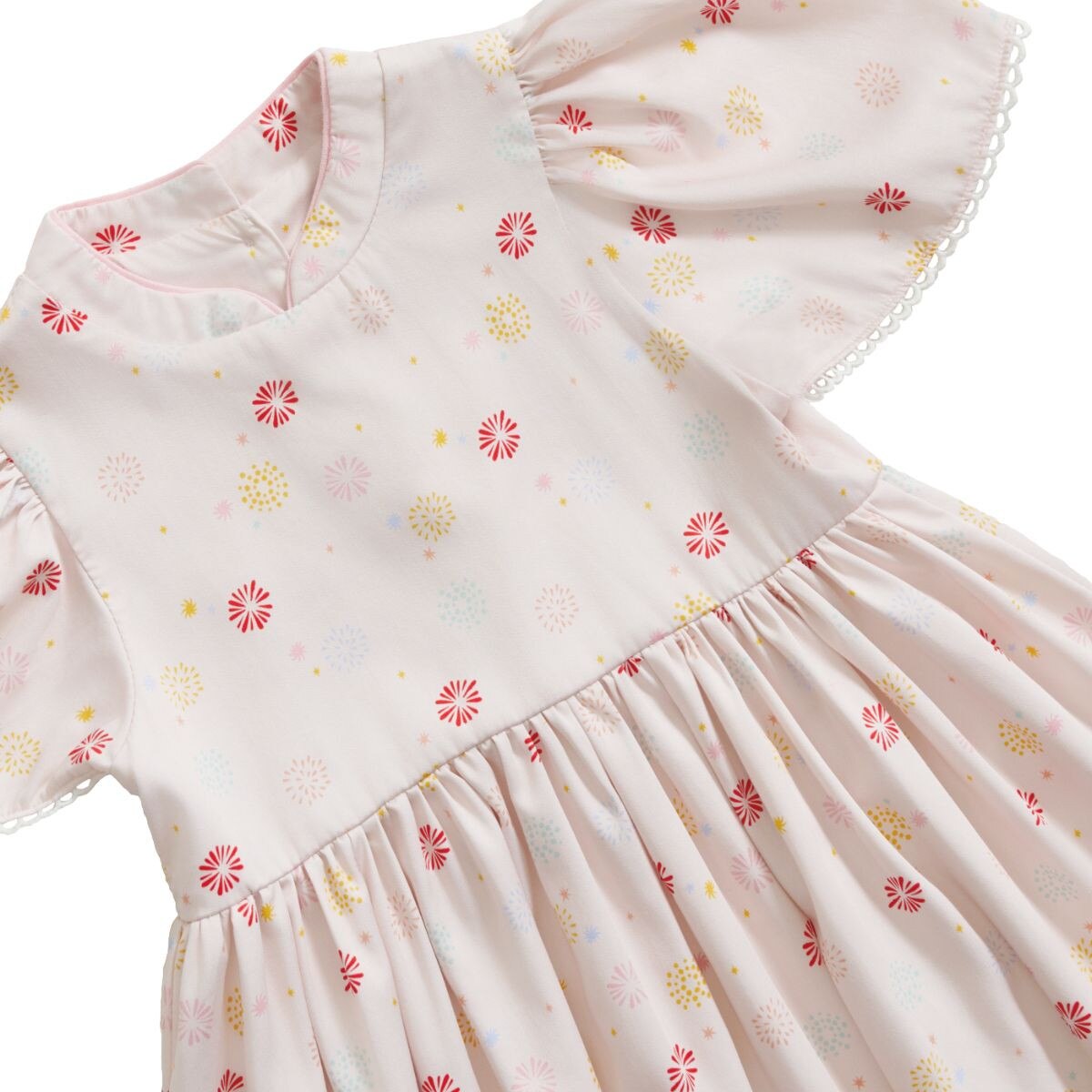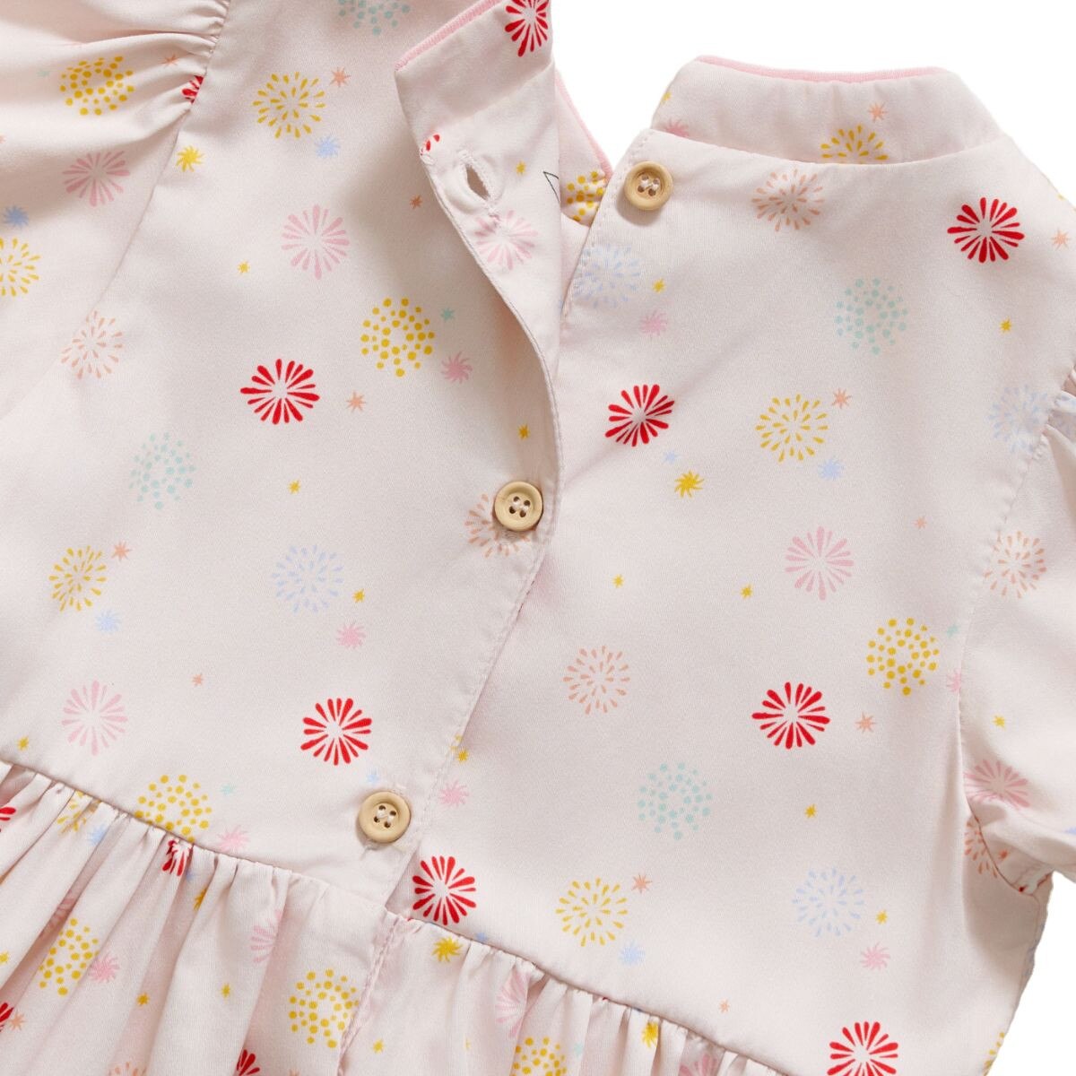 Our Flowerworks Dress brings the spirit of celebration to life with pastel fireworks in cheerful, soft tones. Symbolising happiness, hope, and new possibilities, this print captures the magic of the season in a modern, wearable way. Crafted from a lightweight bamboo-cotton blend, it keeps little ones comfy while looking beautifully festive.
