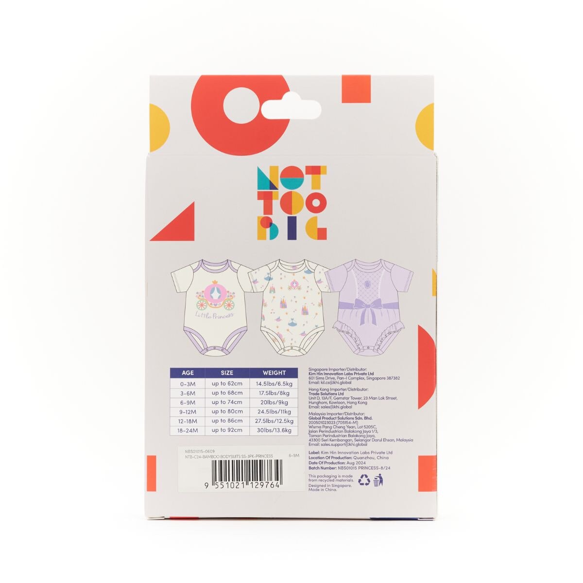 Not Too Big Princess Short Sleeve Bodysuits - 3 Pack