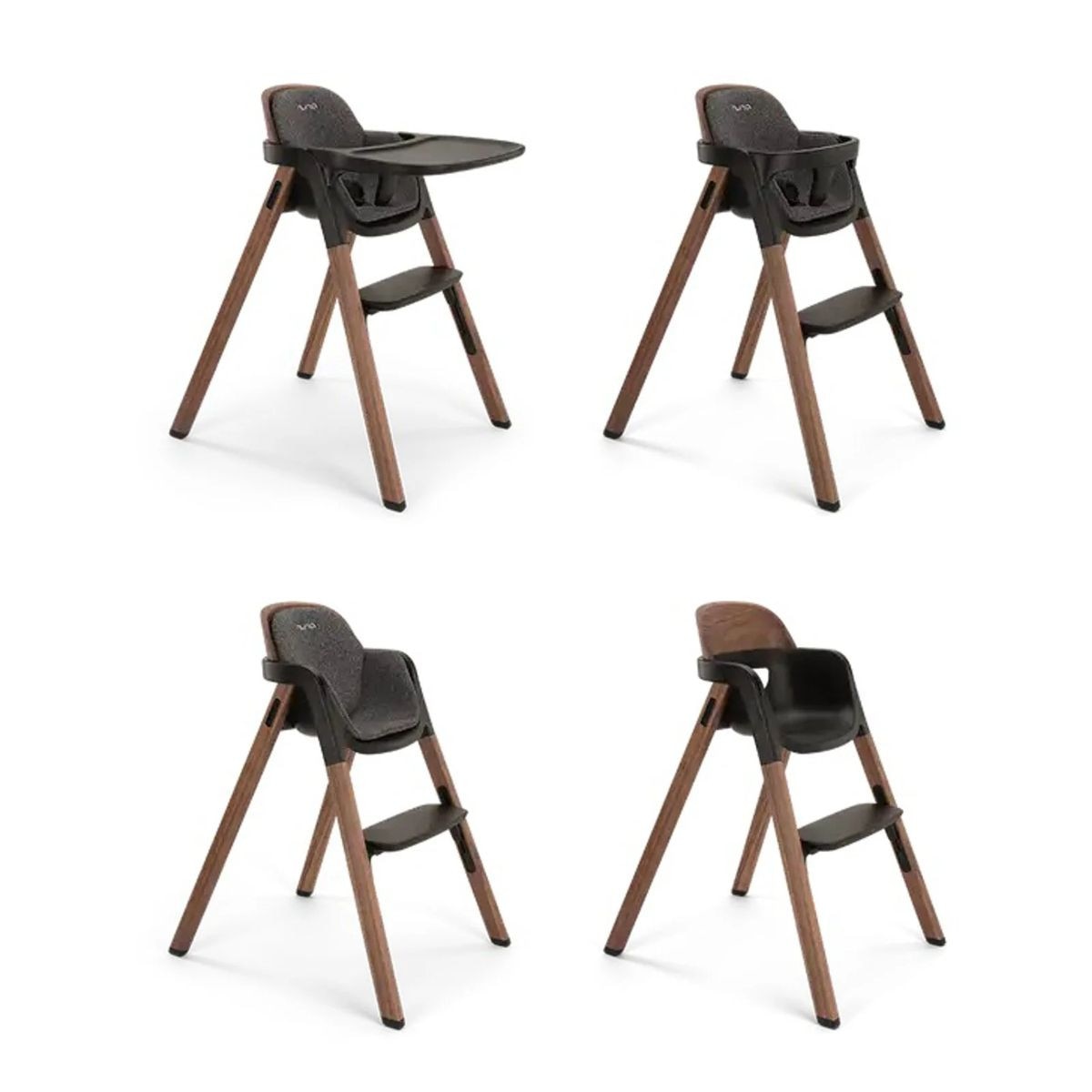 - Each highchair presents an organically unique wood grain and hue, making it a one-of-a-kind statement piece