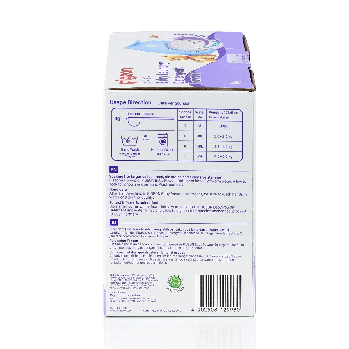Pigeon Baby Laundry Detergent Powder is formulated to simultaneously attract and repel dirt and rinses away without damaging your clothes, your washer or your skin with the unique Trap.Lift.Clean technology. It is ideal for hand and machine wash and highly effective in cleaning stains from baby poop, urine, fruits and other foods. In addition, its Japan-inspired low-foaming formulation makes rinsing off easy especially for hand washing.