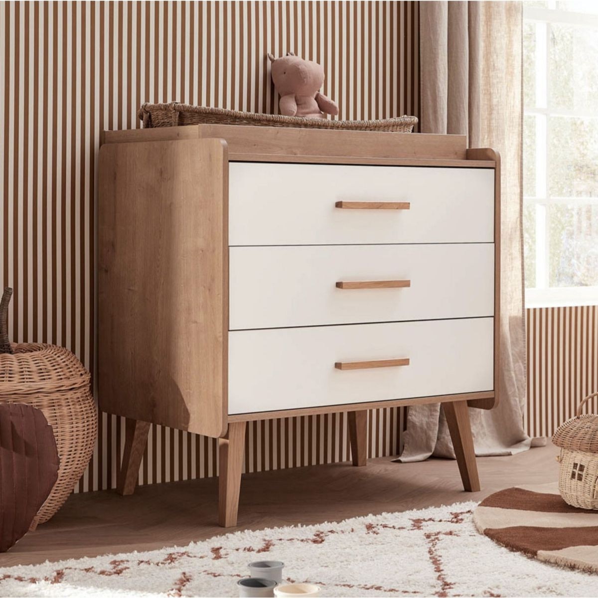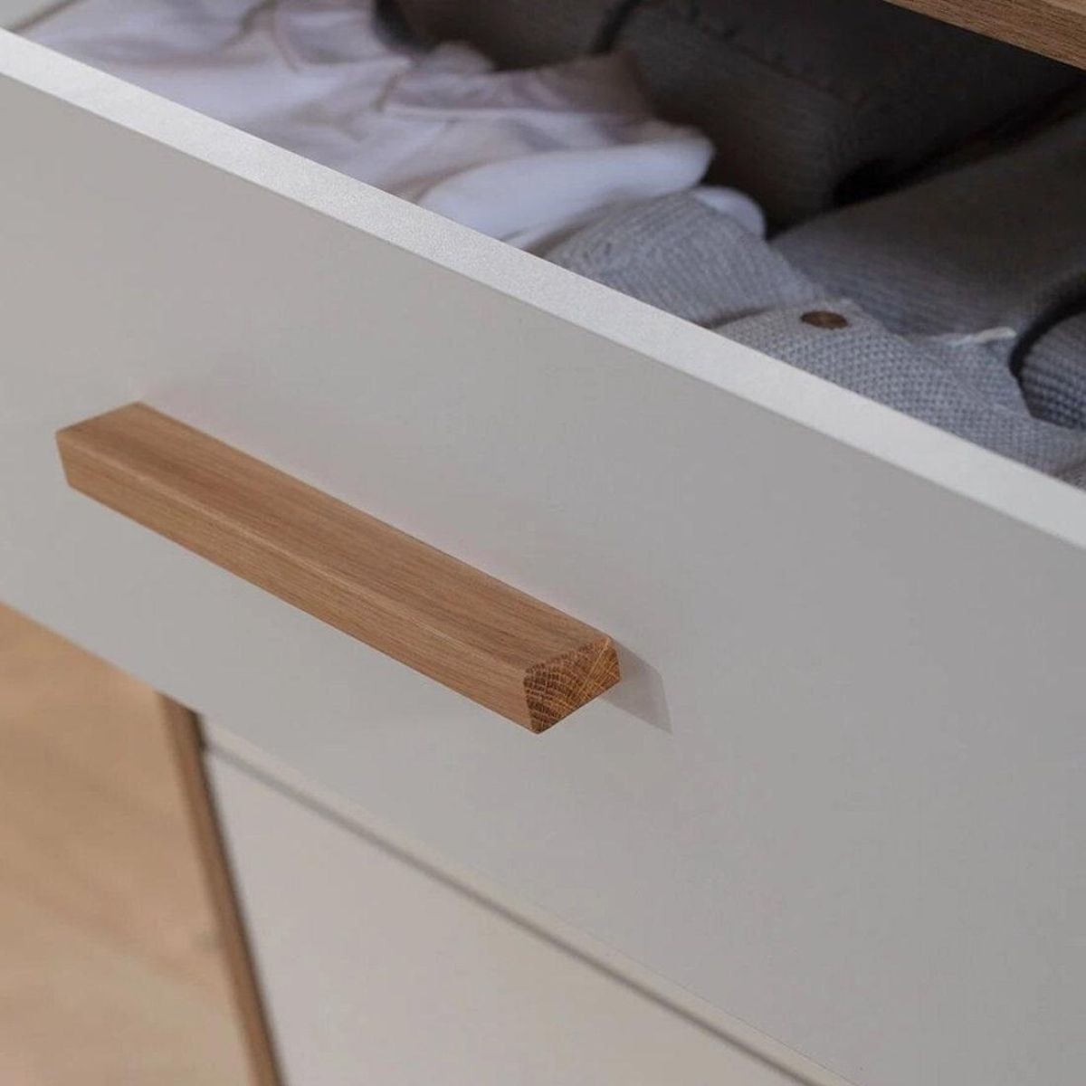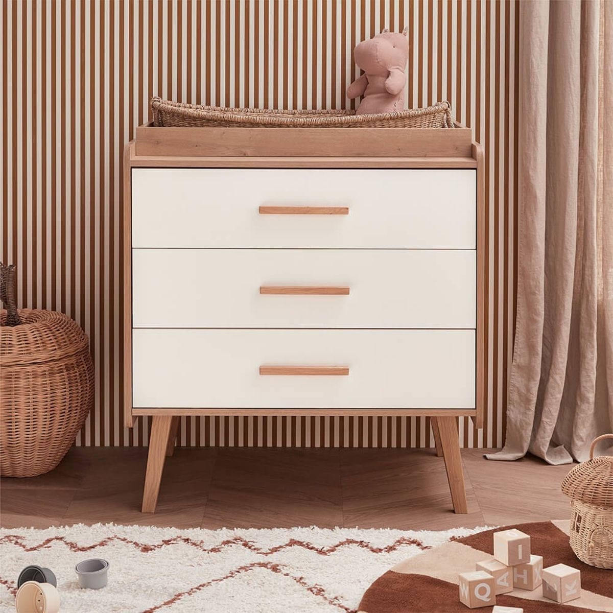 Combining mid-century minimalist inspiration with a contemporary twist, the Westport Dresser features statement white details, enhanced soft curves and finished with solid oak feet for a standout look. The dresser Includes soft close drawers and the changer top can be removed when required, leaving a beautiful standalone piece.