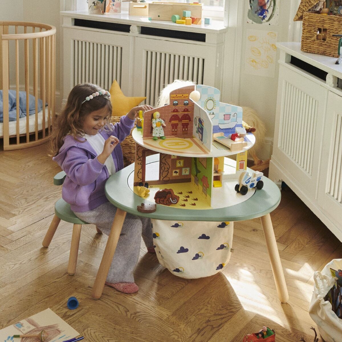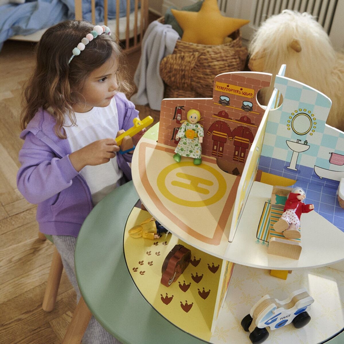 - ?A wooden doll house that encourages creative play & fine motor skills