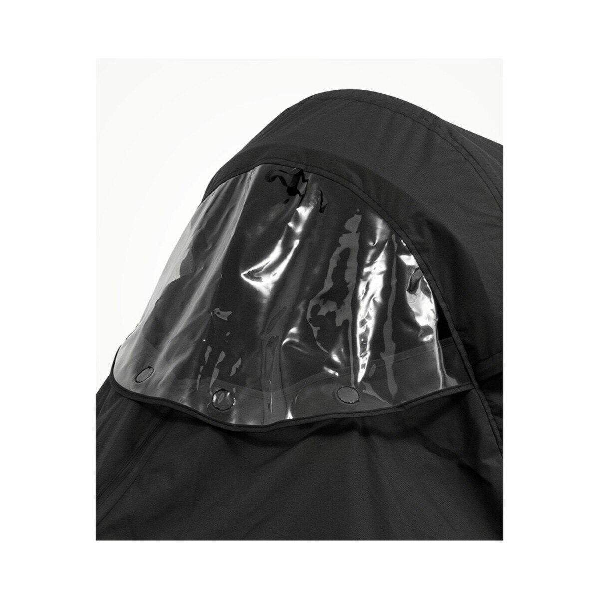 Most importantly, it has plenty of ventilation and a large window for easy access and a great view. It folds into an integrated accessory bag that snaps onto the chassis for storage. To ensure optimal airflow and visibility, we do not recommend using the canopy extension with the Rain Cover.