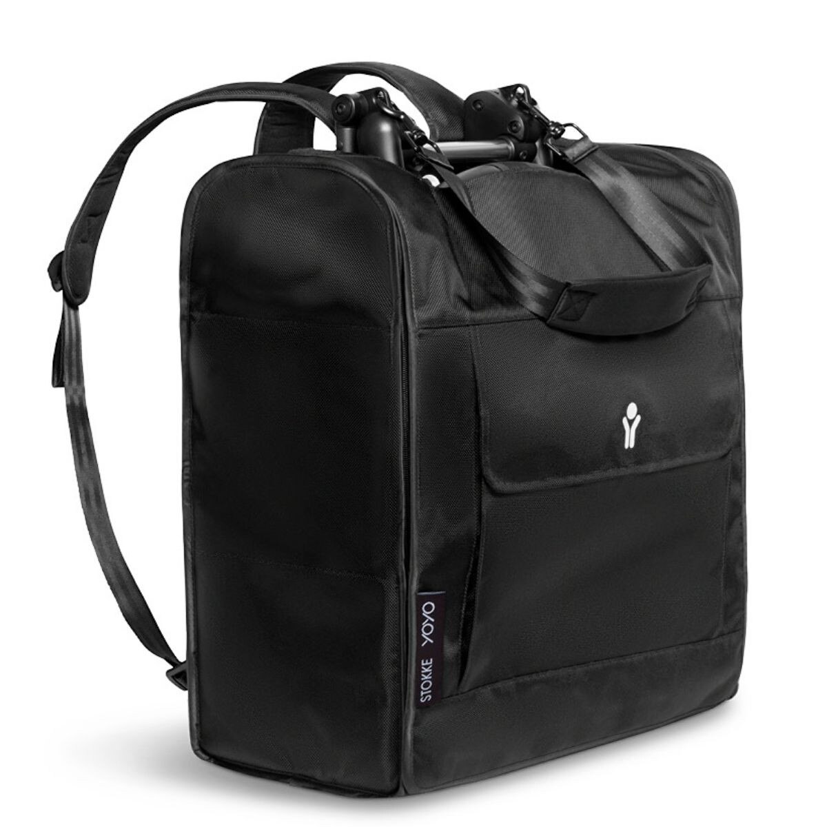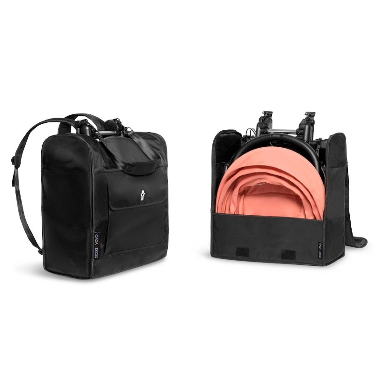 Protect and carry easily your stroller when you're on the go. Protect your YOYO3 stroller with its special backpack when you're on the road. Light and strong, it folds and can be stored in the basket under the seat, carried on the shoulder or as a backpack. With a pocket at the front and a back strap that allows you to attach it to your suitcase, this bag is the essential accessory to make your trips with your YOYO3 and YOYO connect even easier.