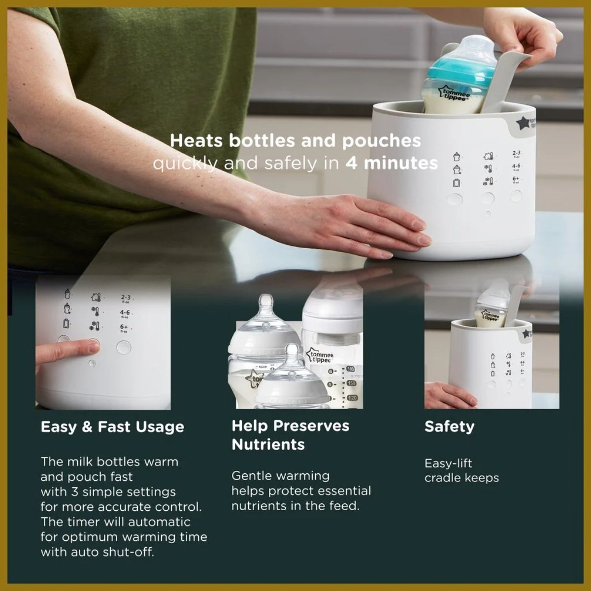 - gentle warming: gradual, gentle warming helps to preserve the goodness and vital nutrients in your baby’s feed and gets it to a comfortable body temperature that feels natural to baby