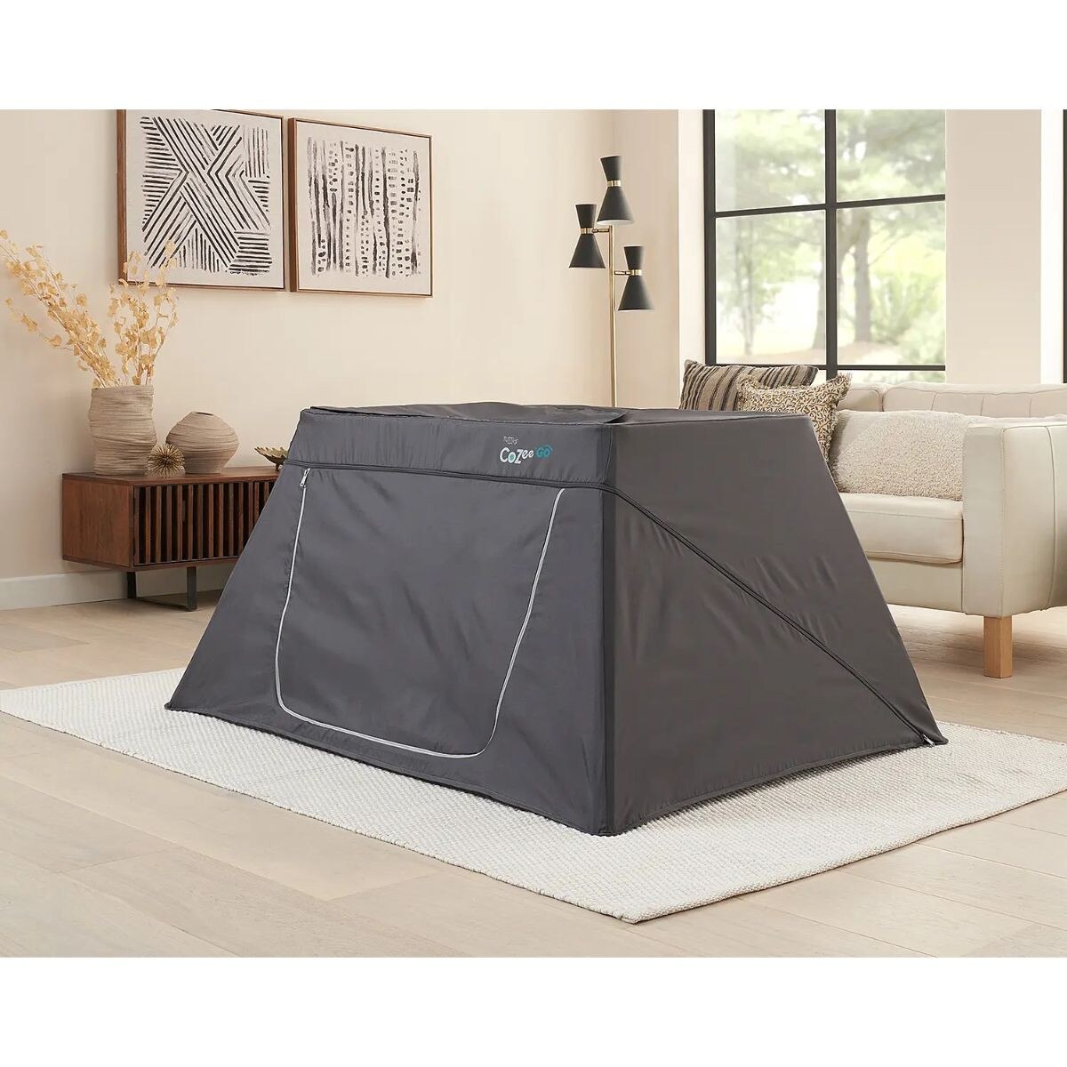 With UV protection of 50+, the CoZee Go sunshade is the perfect outdoors accessory for your cot or playpen, giving you the peace of mind that your little ones is protected against harmful sun rays.Bright or unfamiliar environments can unsettle your little one when travelling. The Day & Night shade instant blackout feature enables your little one to settle and snooze in their CoZee Go wherever they are!