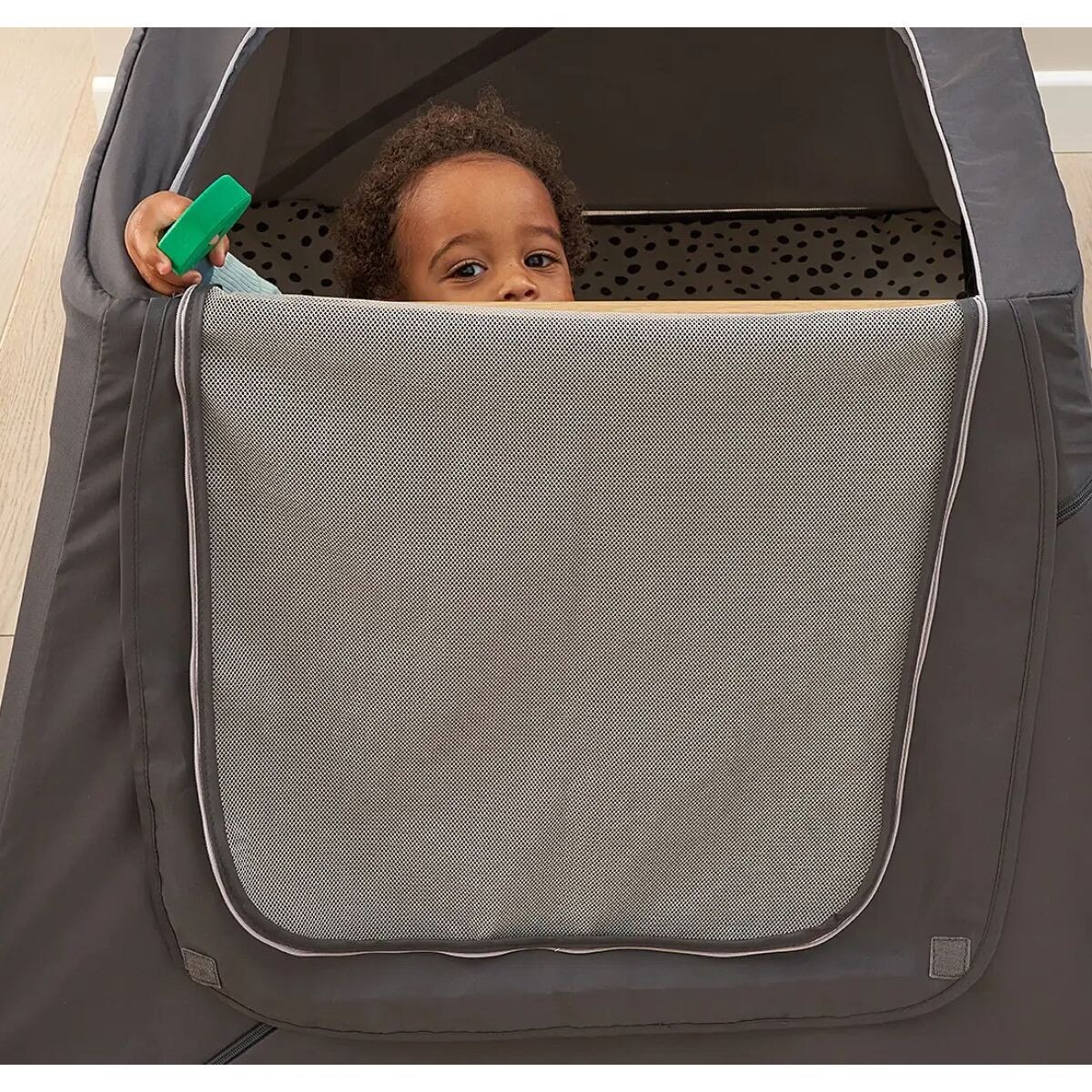 Bright or unfamiliar environments can unsettle your little one when travelling. The Day & Night shade instant blackout feature enables your little one to settle and snooze in their CoZee Go wherever they are!