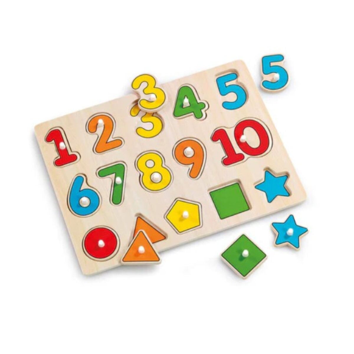Teach little ones about numbers and shapes with the Woodlets Lift & Look Numbers Puzzle. Perfect for little hands, children can lift the colourful number pieces out of the board, sounding out the number one by one. We can count 1 to ten or name the colours of each puzzle piece. What are the names of the different shapes? We can then slot each piece back into place to develop our hand to eye coordination. The Woodlets Lift & Look Number Puzzle is perfect for developing children's learning, plus it is ideal for stimulating their imaginations and helping with dexterity.